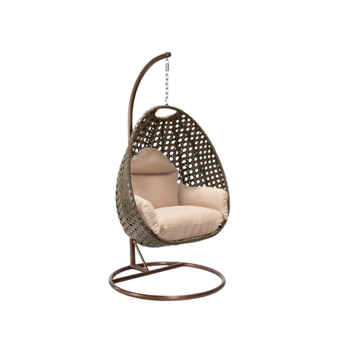 Modern Beige Wicker Hanging Double Seater Egg Swing Chair