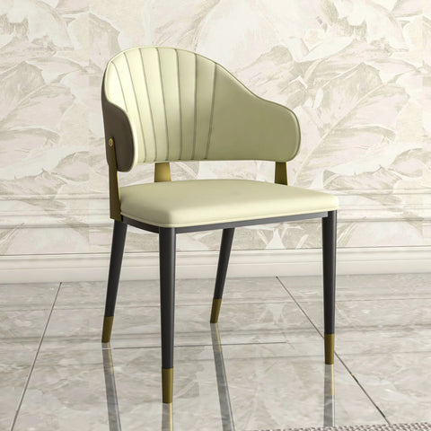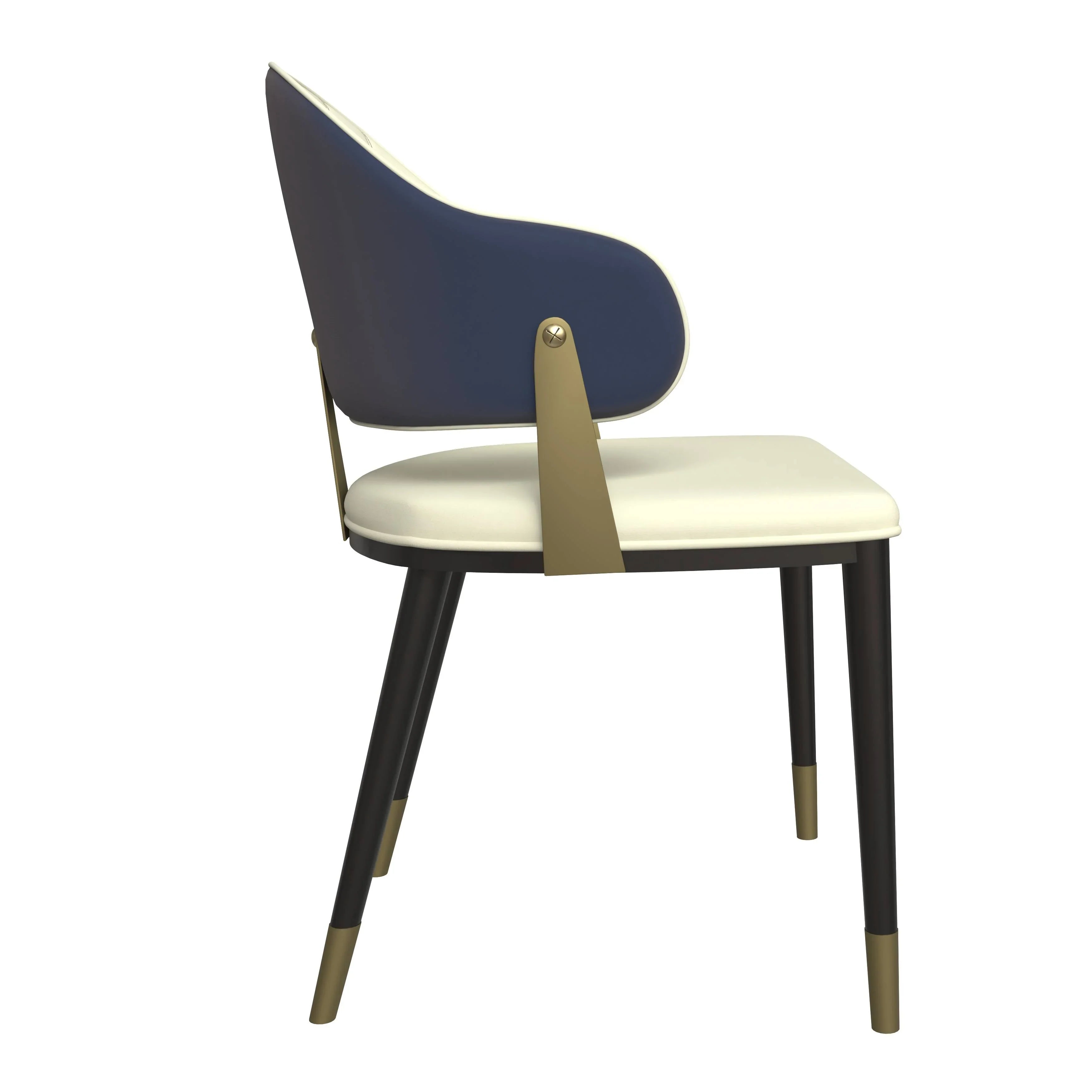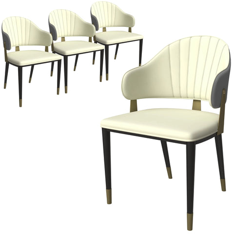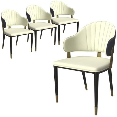 Aria Leather Dining Chair with a Curved Back and Gold Accents Design in Iron Set of 4
