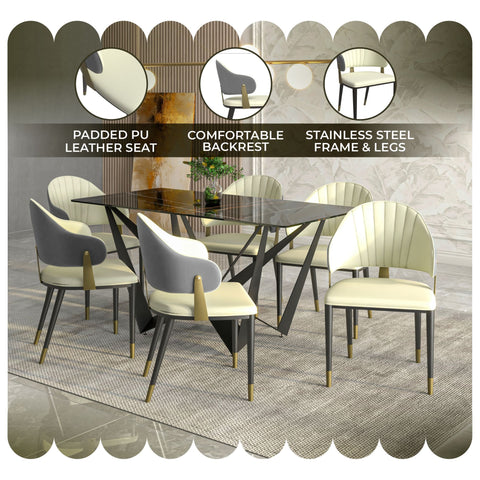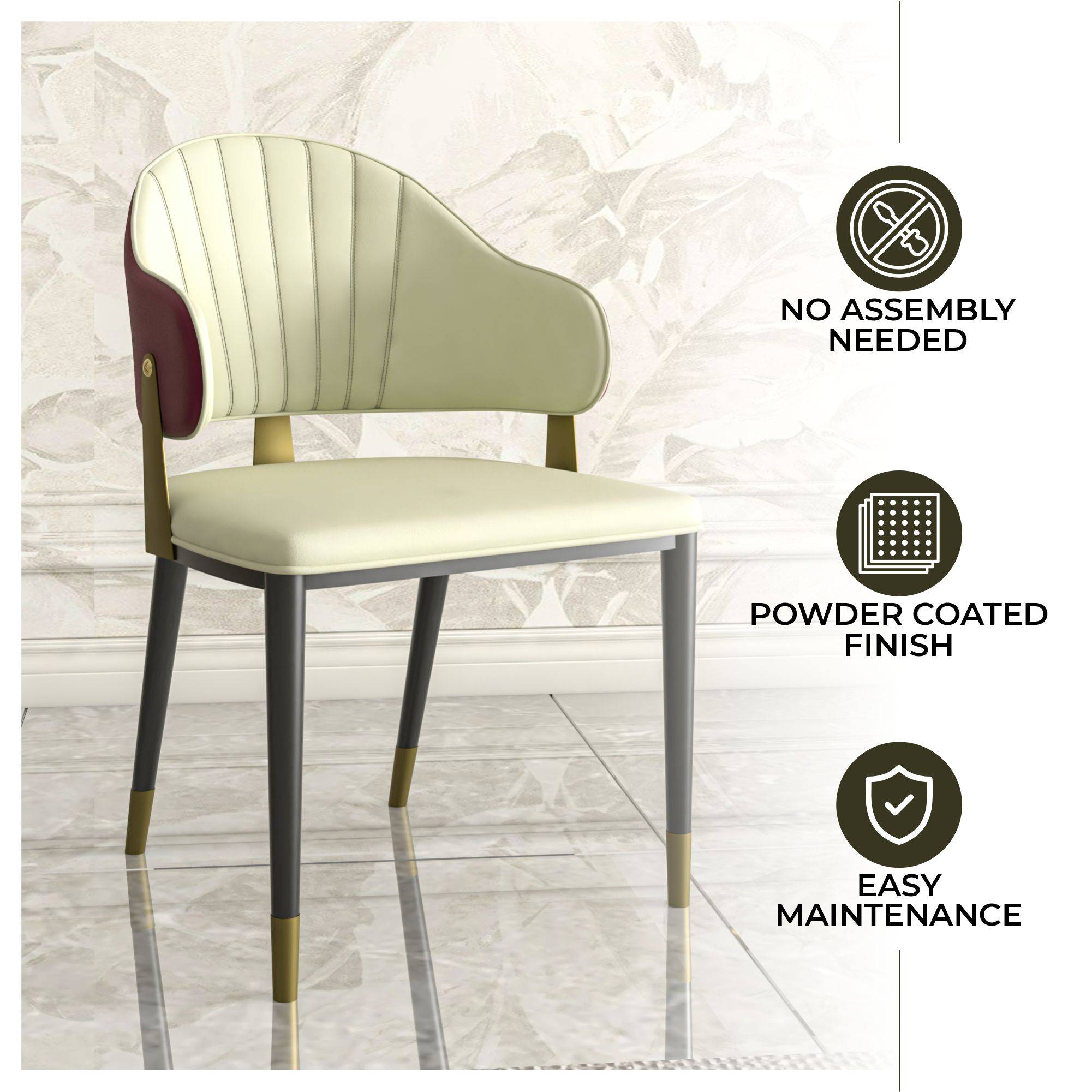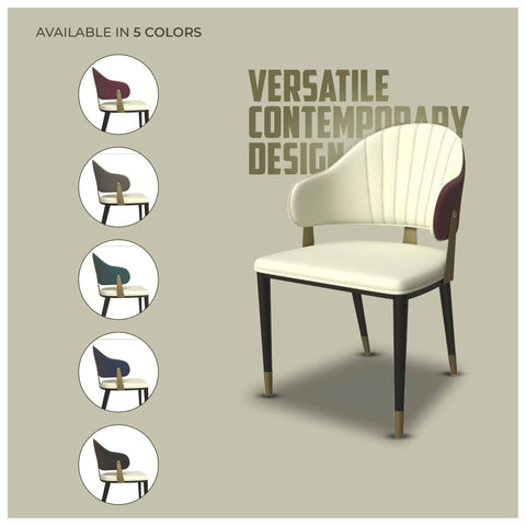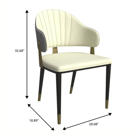 Upgrade your dining experience with the Aria Leather Dining Chair set. Featuring a stylish curved back design and elegant gold accents on sturdy iron frames, these chairs provide both comfort and sophistication. Perfect for any modern dining room, these chairs are sure to impress your guests.