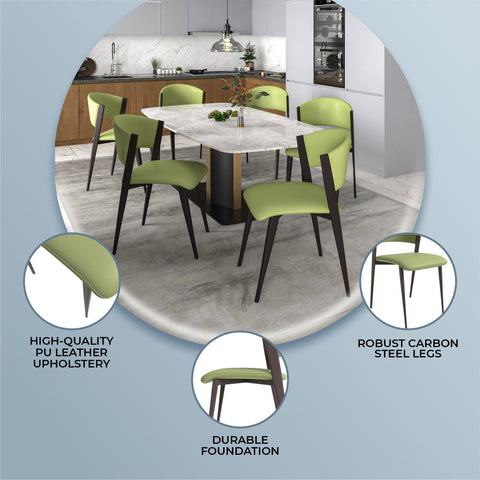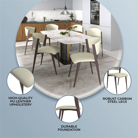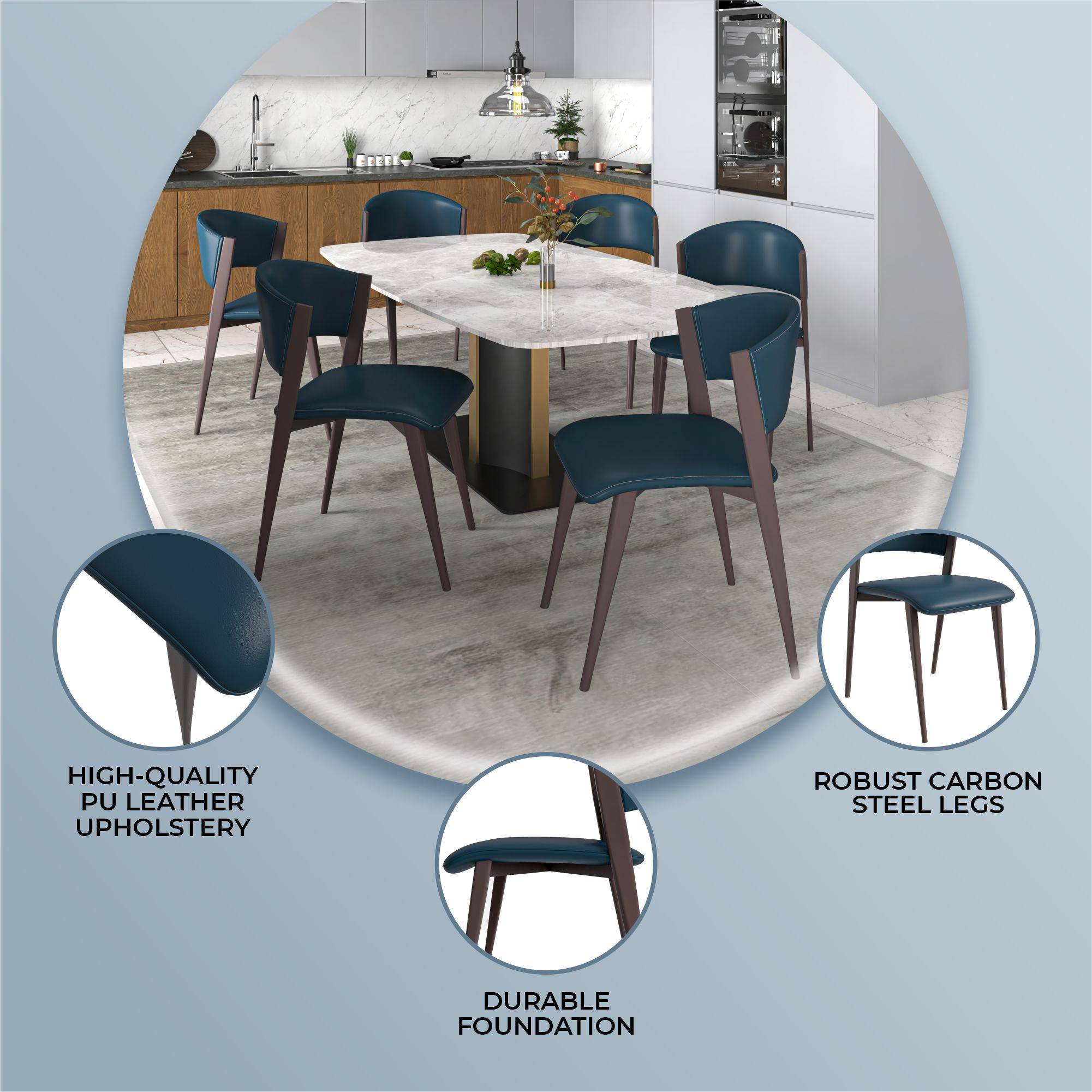 Indulge in comfort with our modern Aspen dining chair featuring soft PU leather upholstery and breathable foam padding. The curved backrest offers optimal support, while sturdy black iron legs ensure durability. Enhanced with waterproof PU leather, it's stylish, easy to maintain, and protected with floor-friendly rubber pads. Versatile and modern, it's perfect for any occasion. Fully assembled for instant enjoyment!