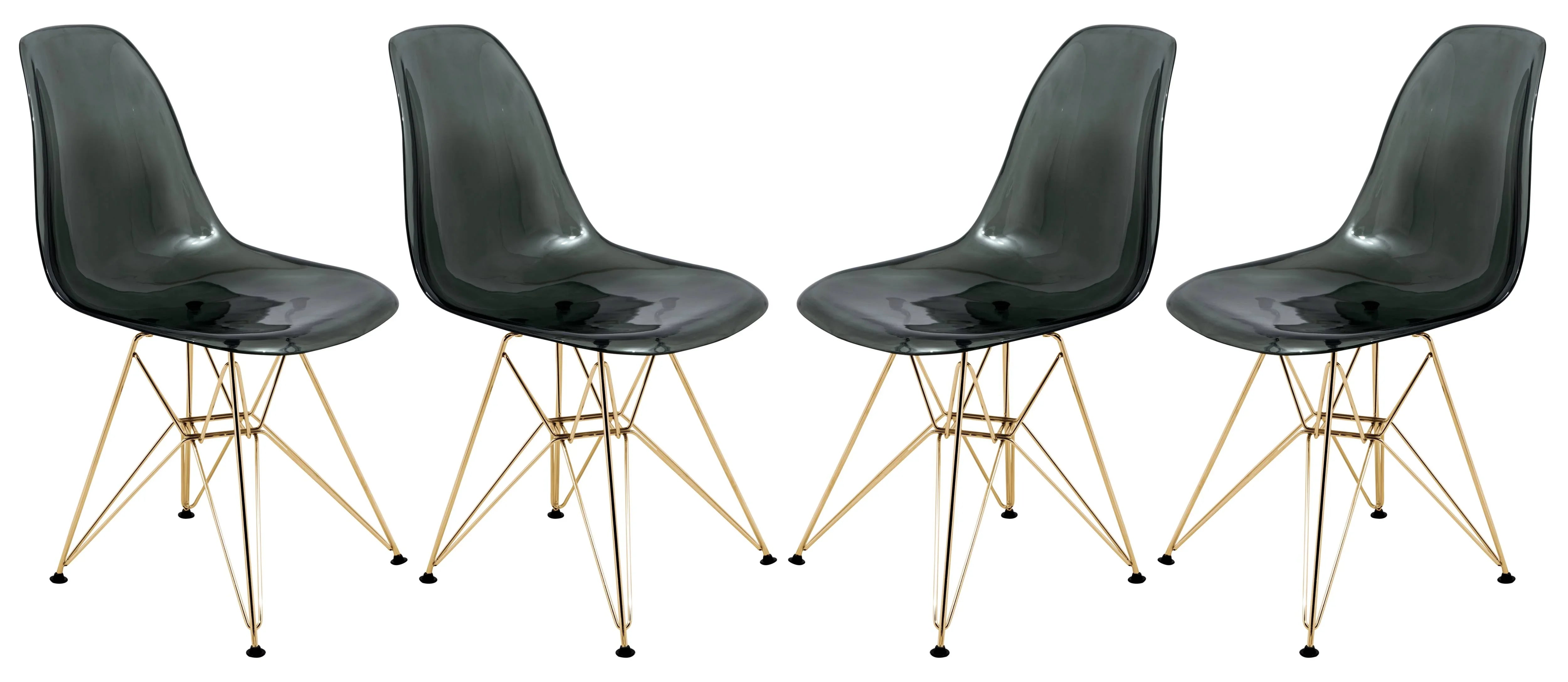 Introducing the sophisticated and sleek Bristol 5-Piece Dining Set. This set includes a 35" round dining table in black iron and four ABS plastic side chairs with gold bases. With its modern design and durable materials, this set is perfect for both everyday use and entertaining guests. Elevate your dining experience now.