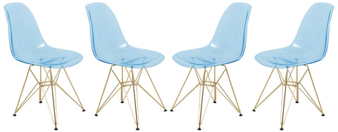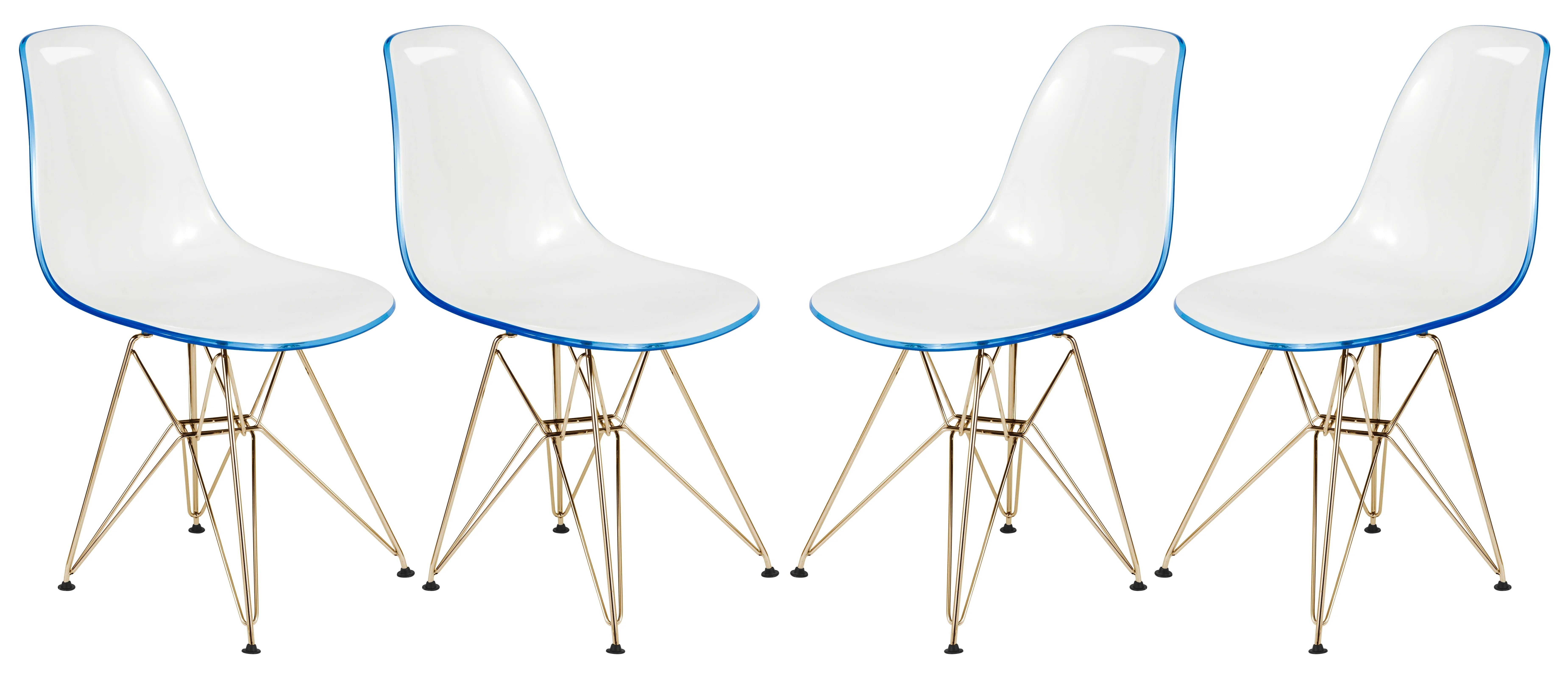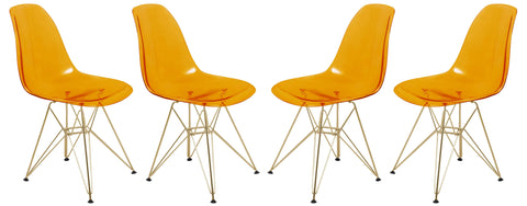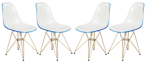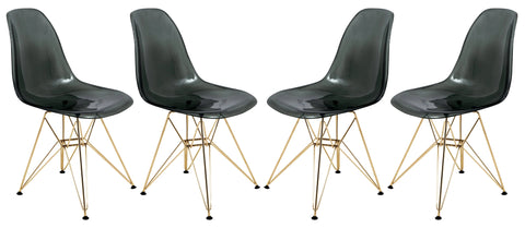 Bristol 5-Piece Dining Set 35" Round Dining Table in Black Iron - 4 ABS Plastic Side Chair in Gold Base