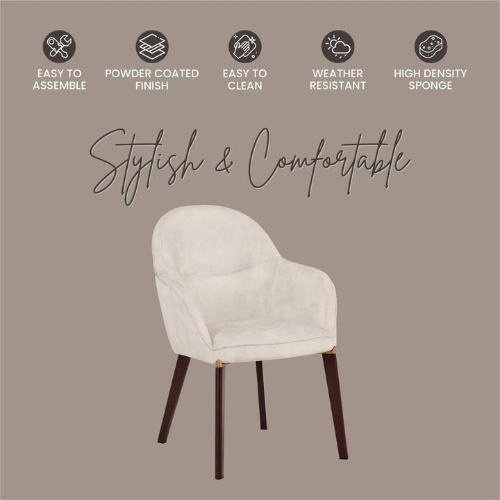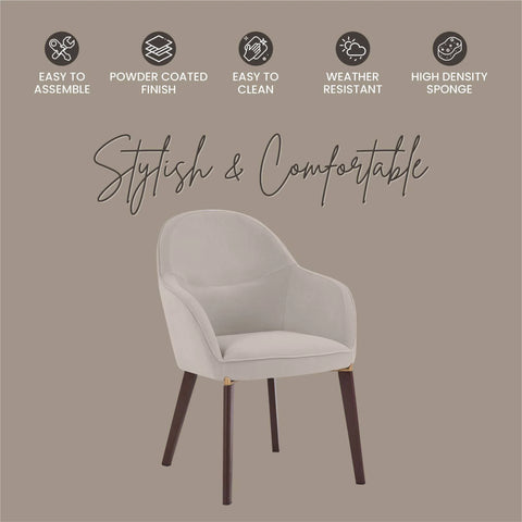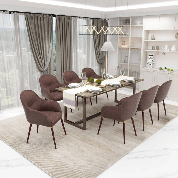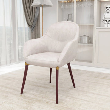 Expertly crafted for comfort and style, the Elias Dining Chair blends luxurious leather velvet upholstery with sturdy powder coated iron legs. Its sleek design and durable materials make it a perfect addition to any dining room, providing both elegance and functionality. Elevate your dining experience with the Elias Dining Chair.