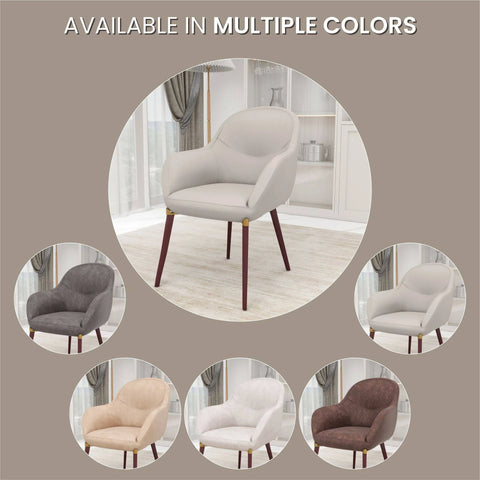 Elias Dining Chair Upholstered in Leather Velvet and Powder Coated Legs
