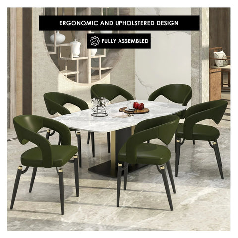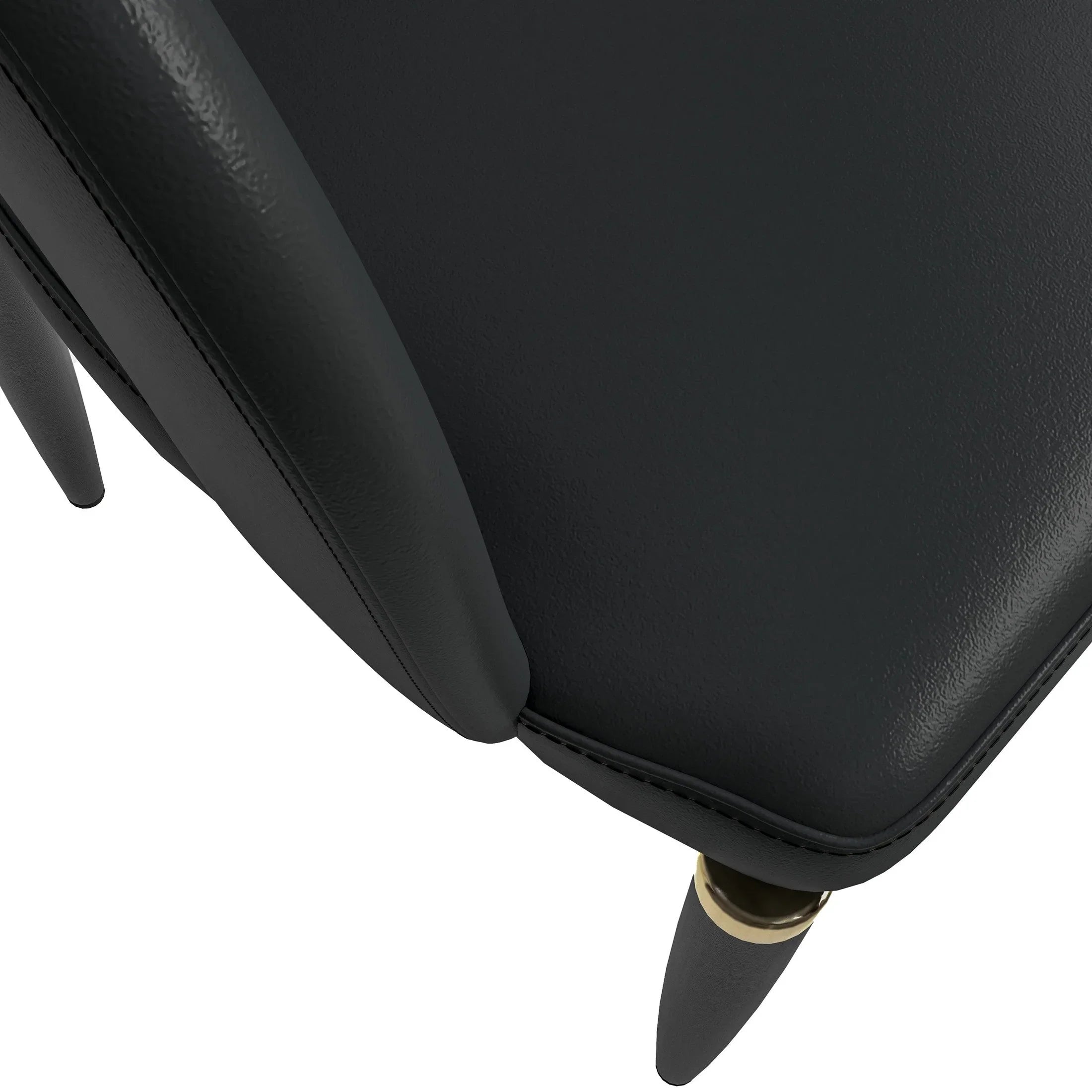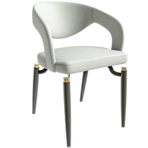 Elevate your dining experience with the sophisticated Entice Modern Dining Chair. Crafted with plush leather upholstery and sleek, curved open backrest, it offers unparalleled comfort and support. Designed for extended seating, it seamlessly blends elegance with durability. Easy to maintain with protective iron legs, it comes with rubber pads for floor protection.