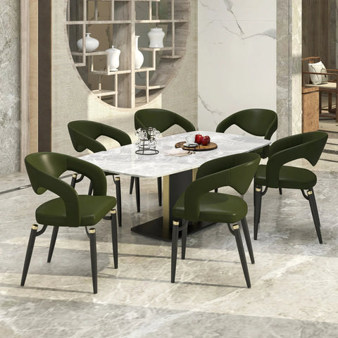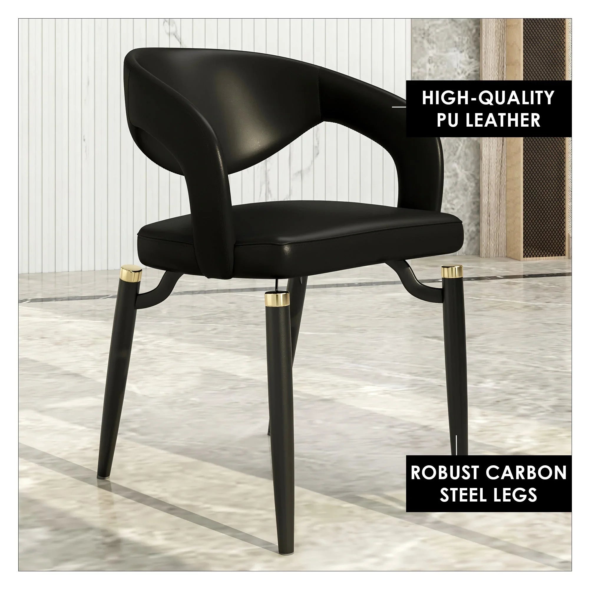 Entice Leather Dining Chairs with Curved Open Back Design and Iron Leg – Elax Furniture Skip to content