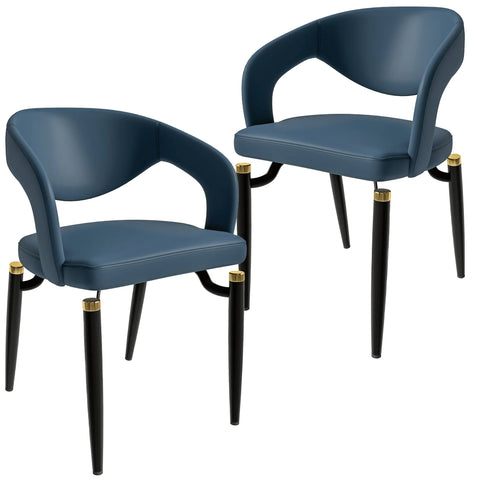 Entice Leather Dining Chairs with Curved Open Back Design and Iron Legs Set of 2