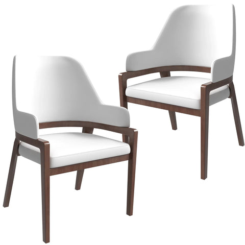 Ethora Leather Dining Chair: Upholstered, Curved Open-Back & Rubberwood Frame Set of 2