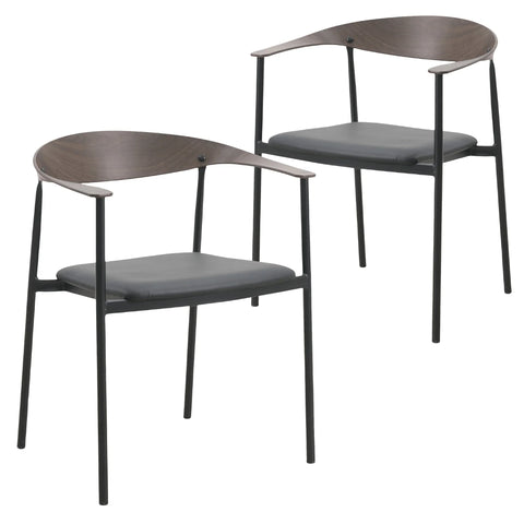 Kora Leather Dining Chair with Open-Back Design and Stainless Steel Frame and Legs Set of 2