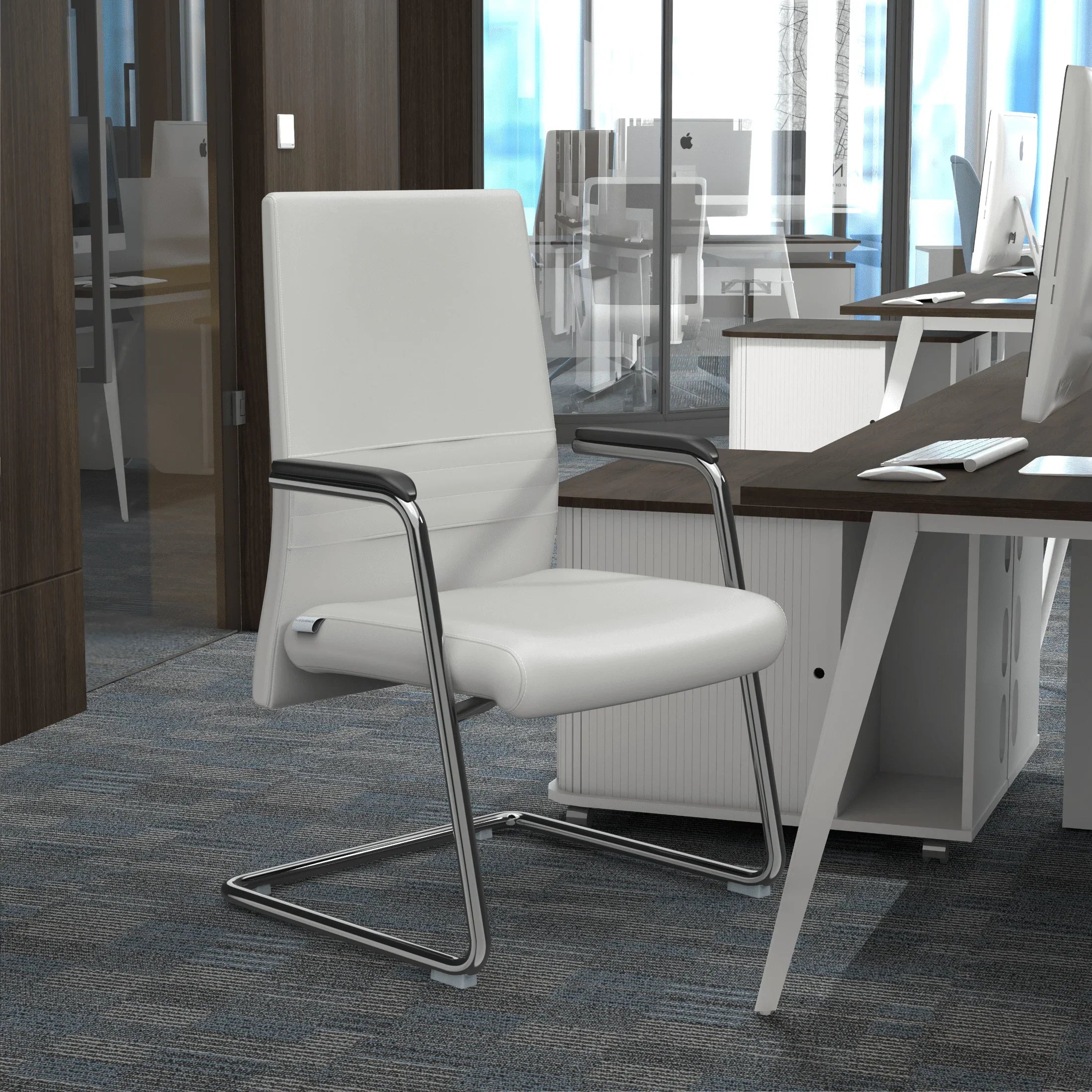 Experience unparalleled style and comfort with our Aleen Office Chair. Designed with a durable iron frame and premium vinyl upholstery, this chair offers both stability and sophistication. Sink into the plush comfort of the upholstered back and seat, while the fixed armrests provide added support. Productivity meets style with the Aleen Office Chair.