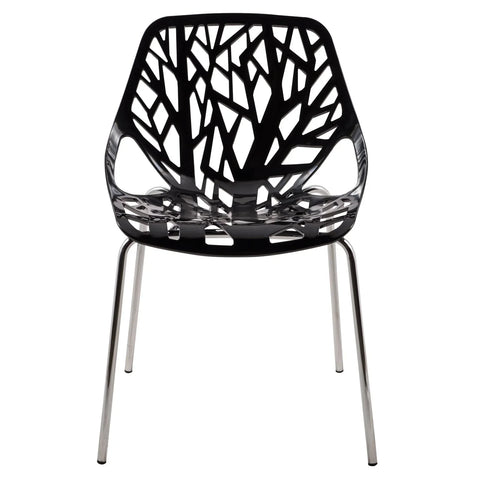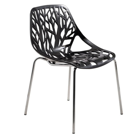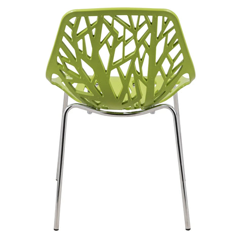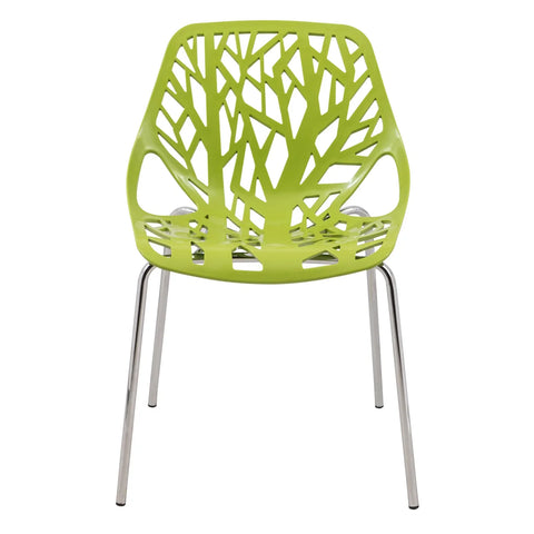 Asbury Polypropylene Dining Side Chair with Forest Cut-Out Design in Chrome
