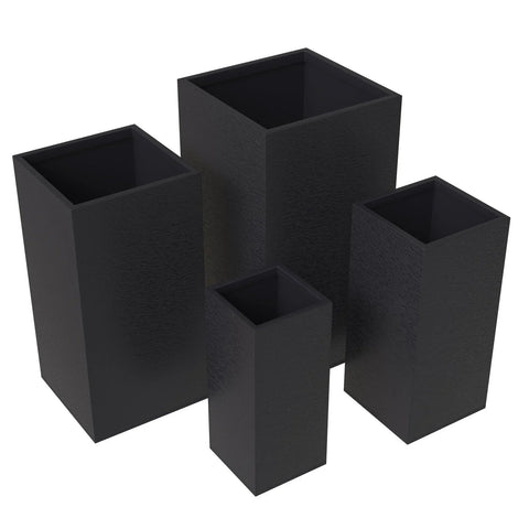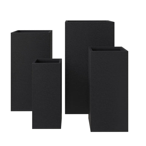 Basalt 4-Piece Fiberstone and MGO Clay Planter Set, Mid-Century Modern Tall Square Planter Pot for Indoor and Outdoor