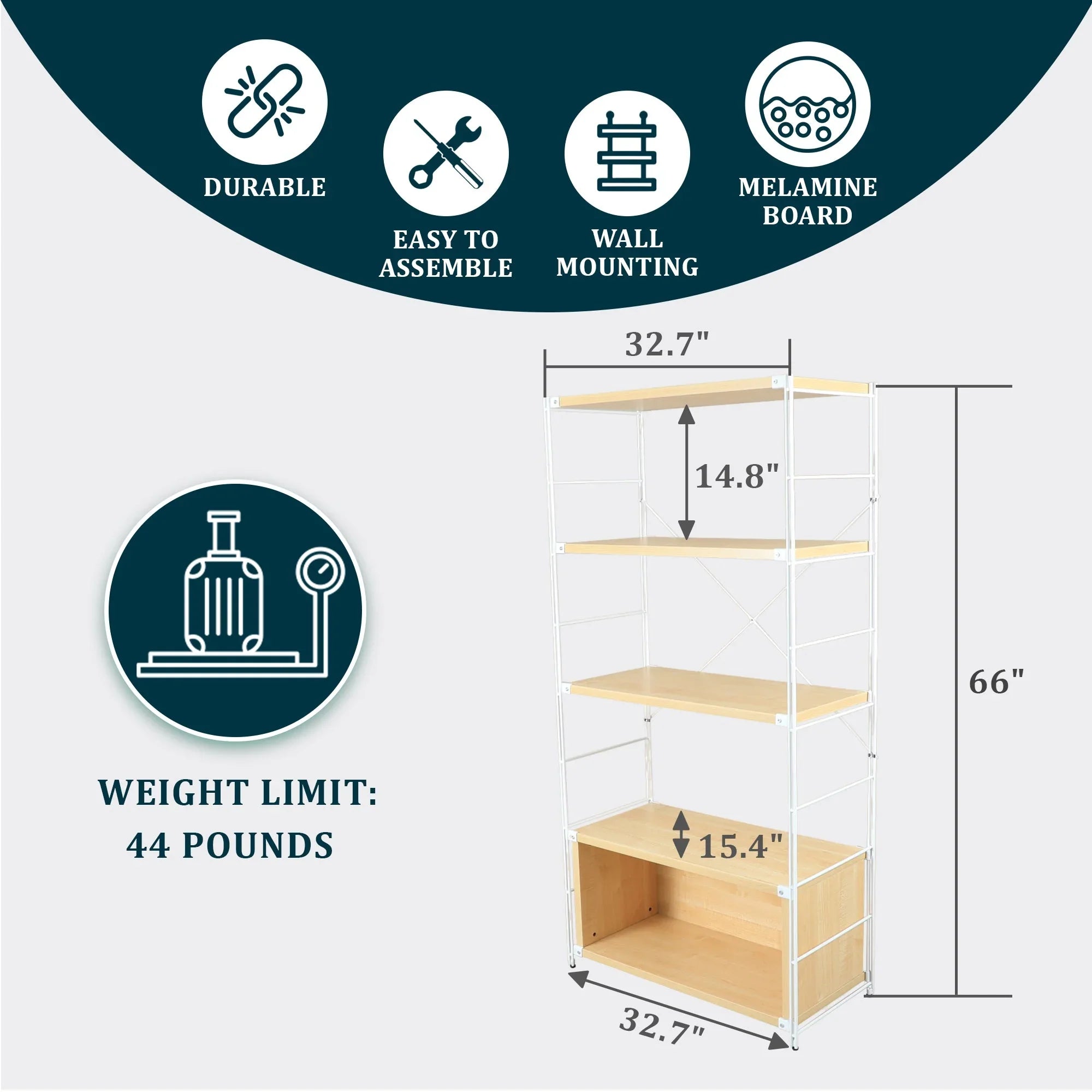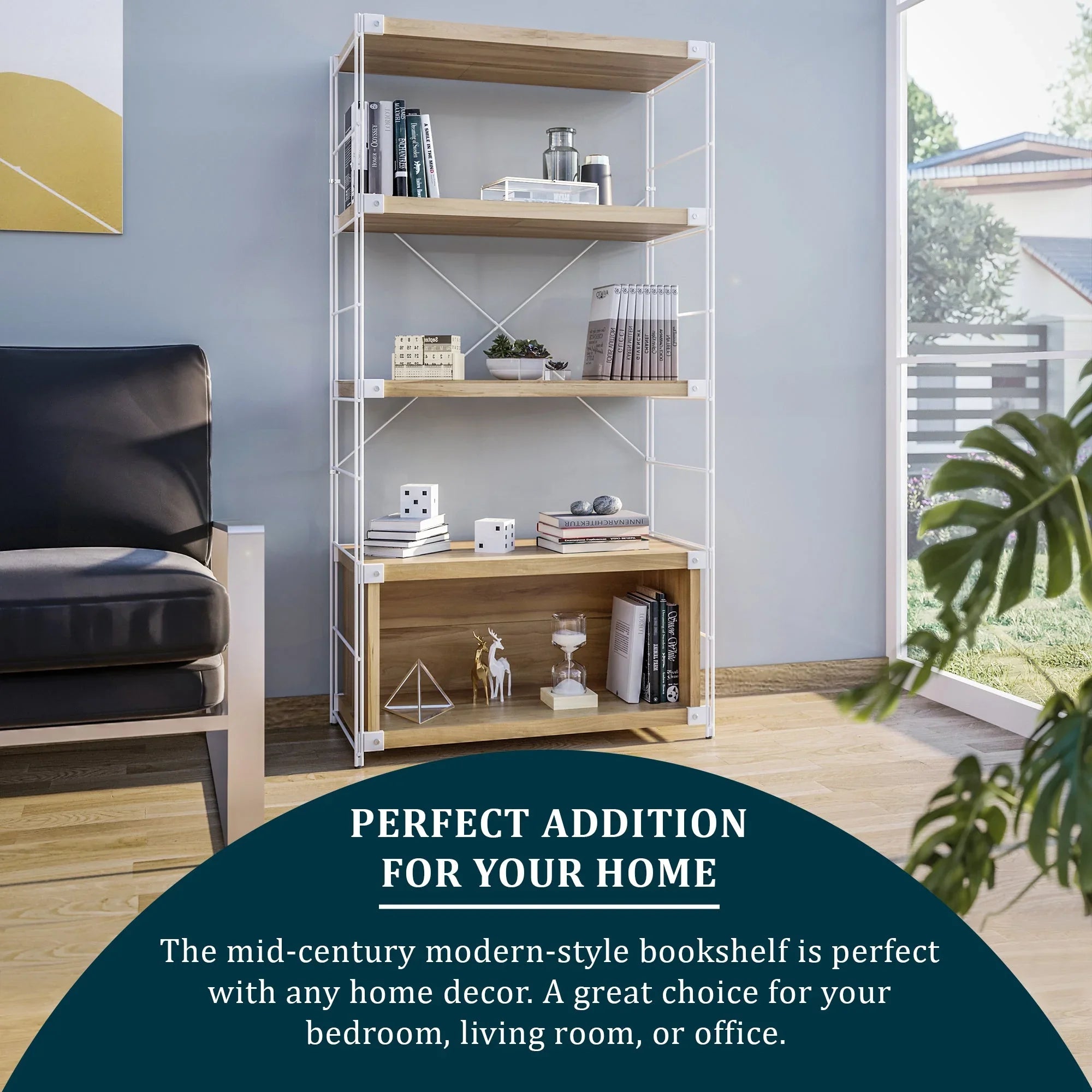 Brentwood Etagere Bookcase with White Powder Coated Steel Frame and Melamine Board Shelves