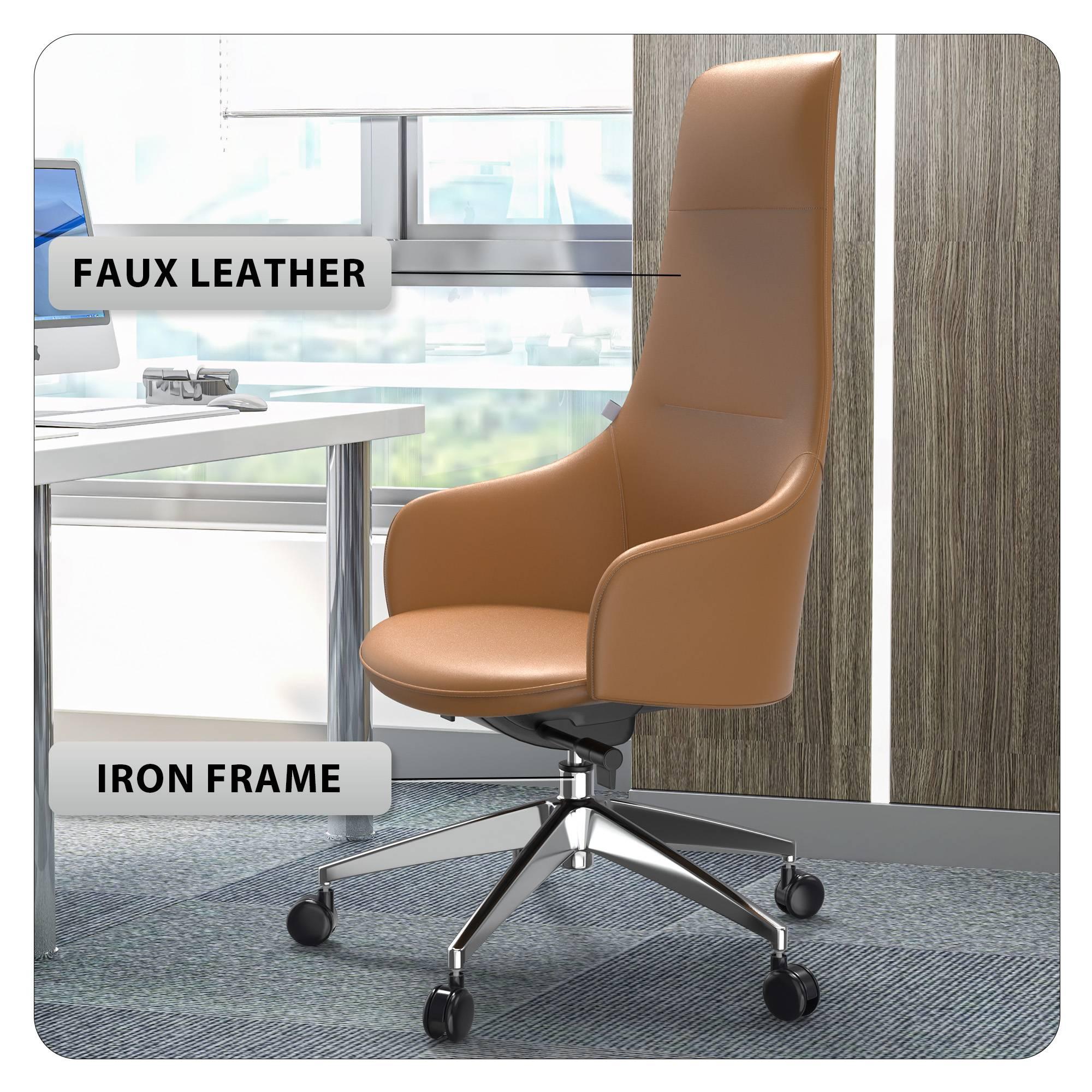 Elevate your office experience with the Celeste Office Chair. Its ergonomic design and faux leather upholstery provide both comfort and style. Enjoy the freedom to move and easily adjust the height with 360-degree swivel and adjustable feature. Discover the perfect balance of sophistication and functionality with our high-back office chair.