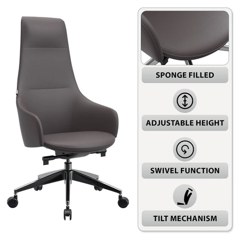 Celeste High-Back Office Chair in Upholstered Leather and Iron Base with Swivel and Tilt