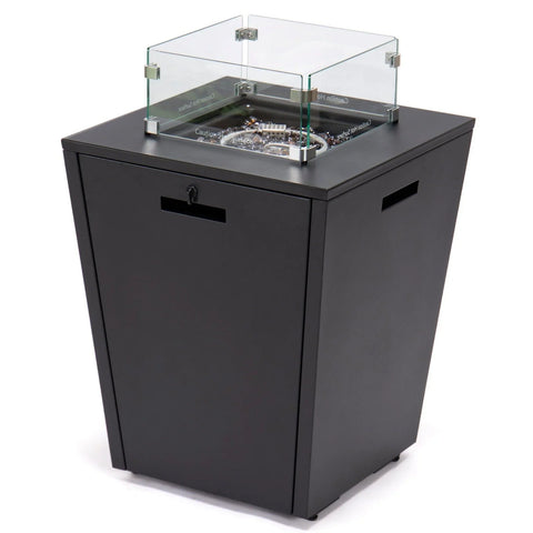 Chelsea Steel Fire Pit Table with Tempered Glass Wind Guard and Lid