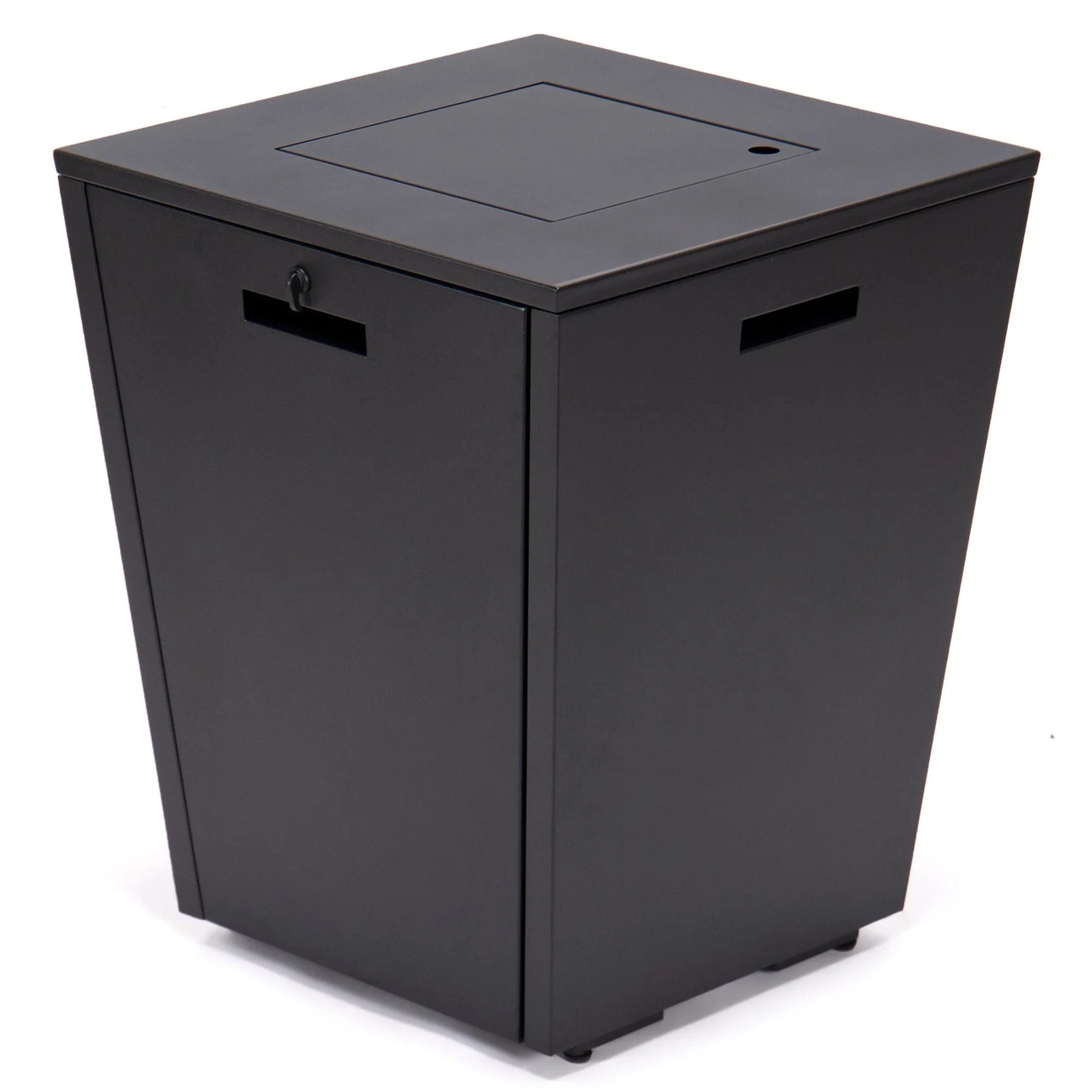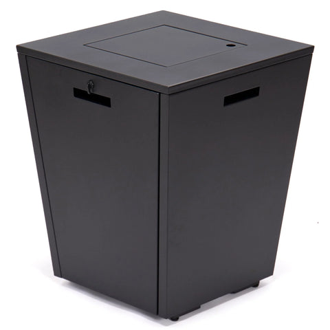 The Chelsea 32 in Gas Fire Pit Table is a certified propane steel fire pit, with a powerful 37,000 BTU output. Its tempered glass wind guard and lid provide added safety and protection. Stay warm and cozy while enjoying a stylish addition to your outdoor space.