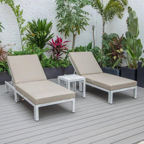 Chelsea Modern Outdoor Weathered Grey Chaise Lounge With Side Table & Cushions Set of Two