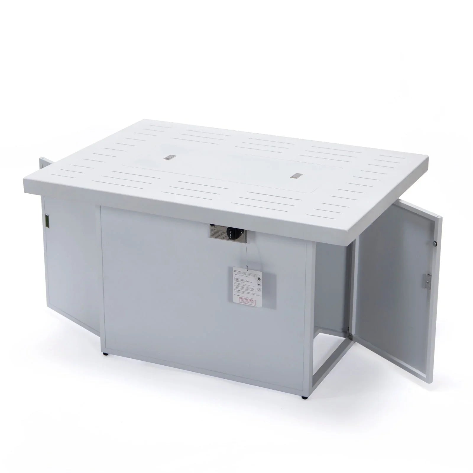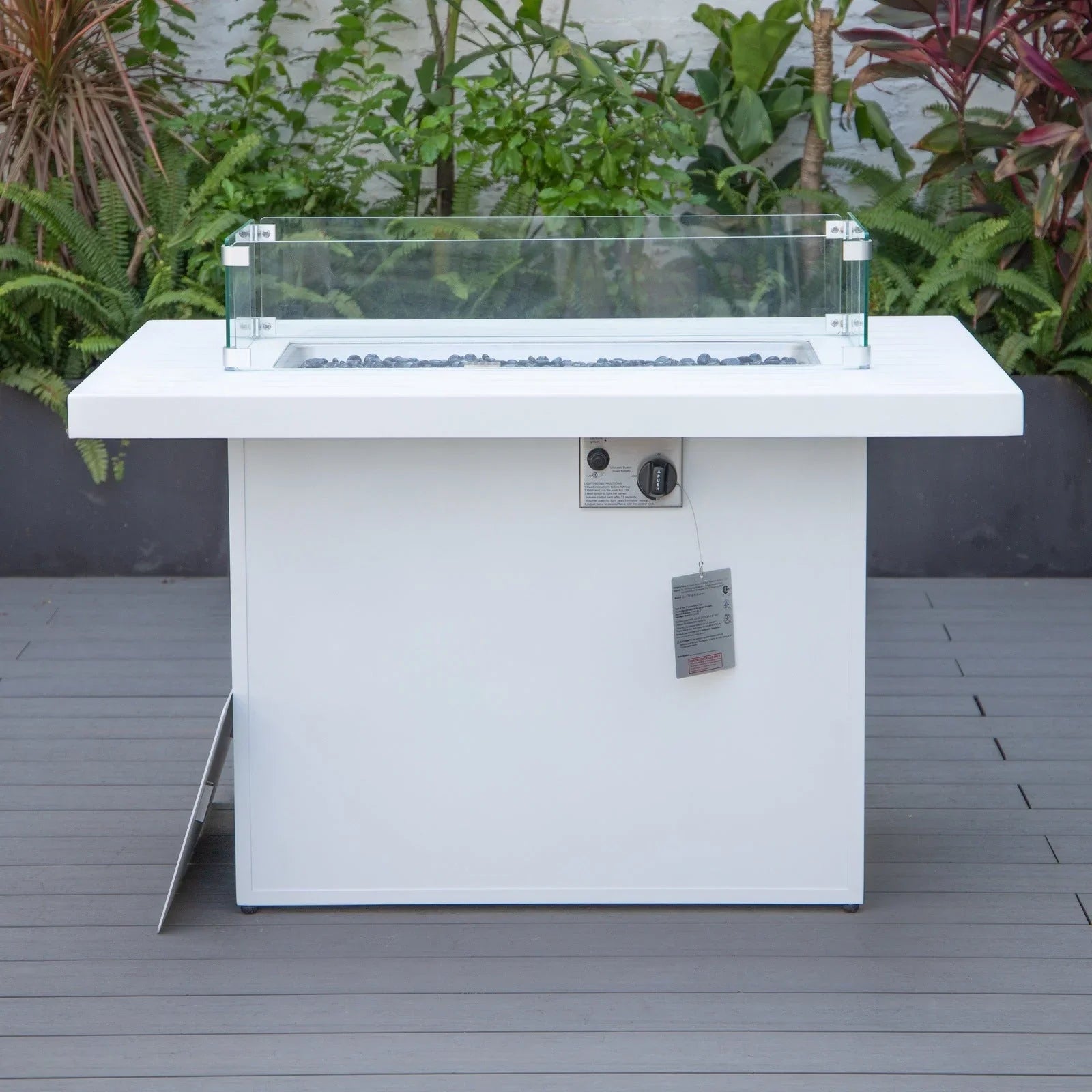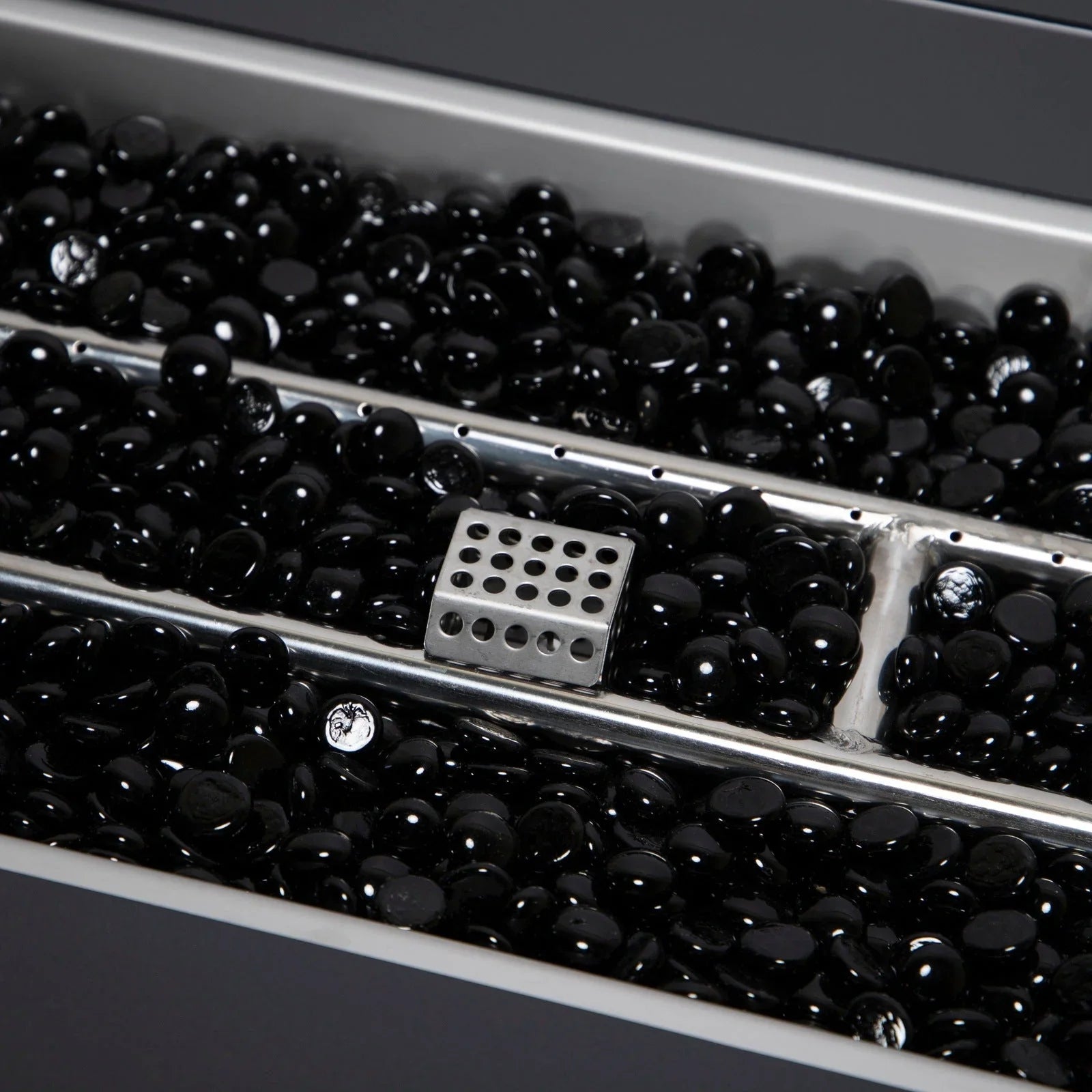 This professionally designed Chelsea Patio Modern Black Aluminum Propane Fire Pit Table offers a sleek and modern addition to any outdoor space. Made with durable aluminum, this fire pit table is both stylish and functional. With its efficient propane fuel source, it provides a convenient and eco-friendly way to enjoy the warmth and ambiance of a fire outdoors.