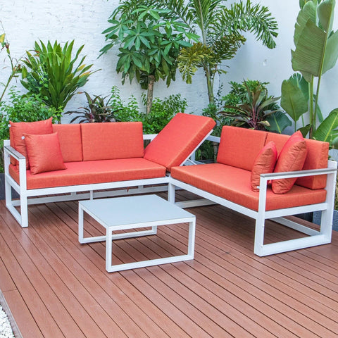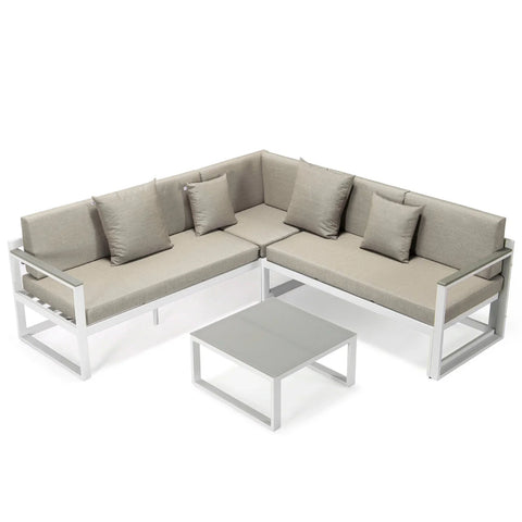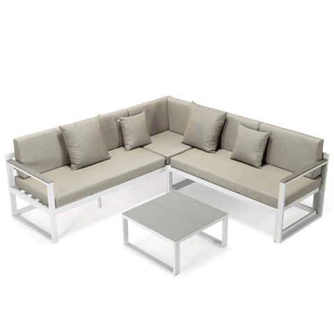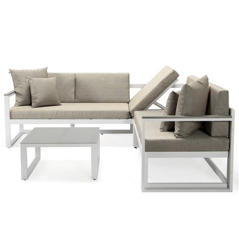 Chelsea White Sectional With Adjustable Headrest & Coffee Table With Cushions