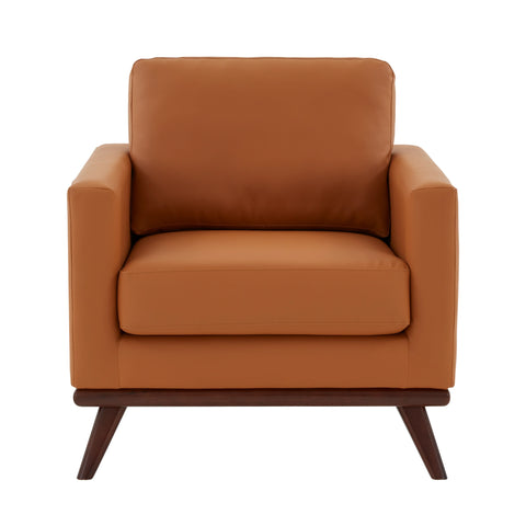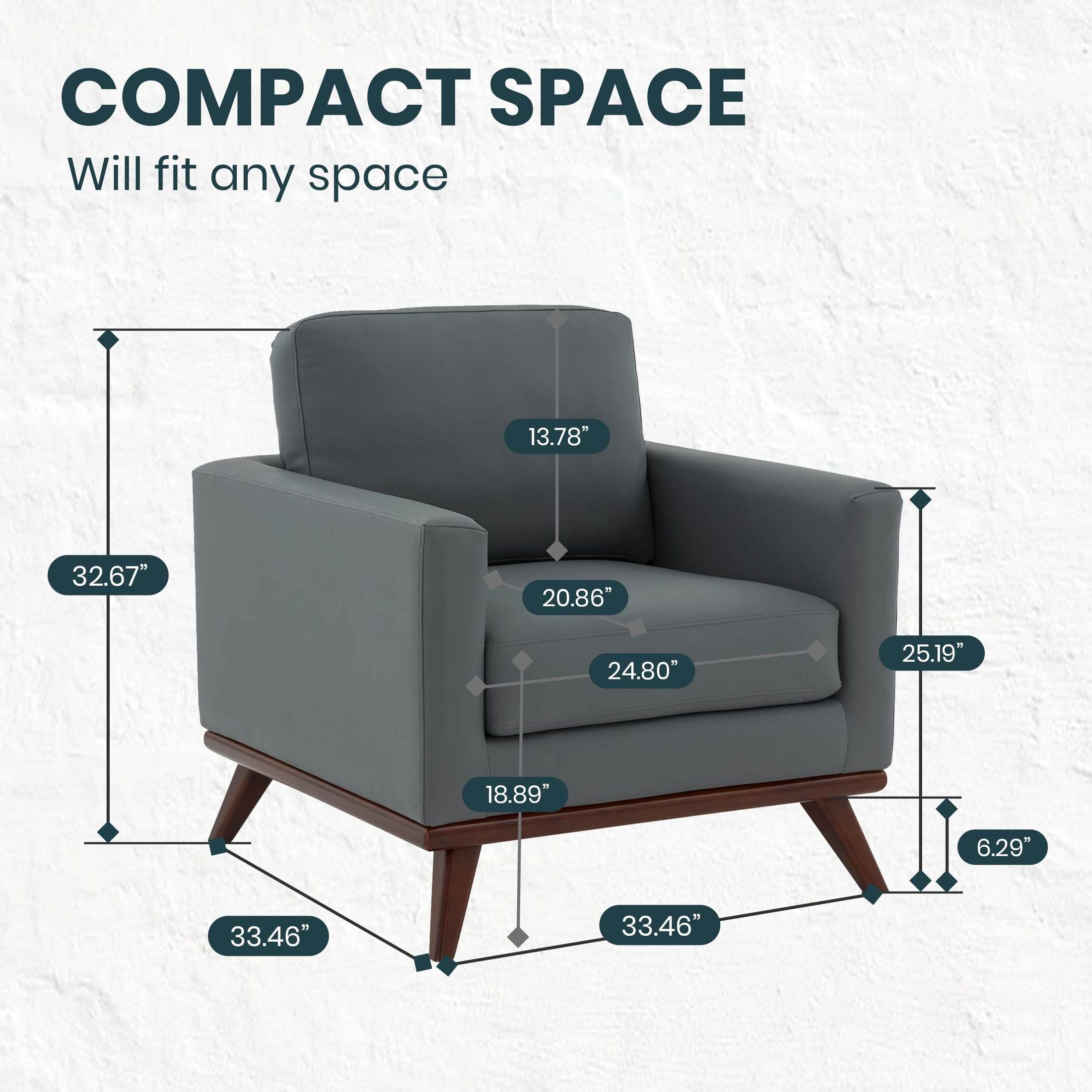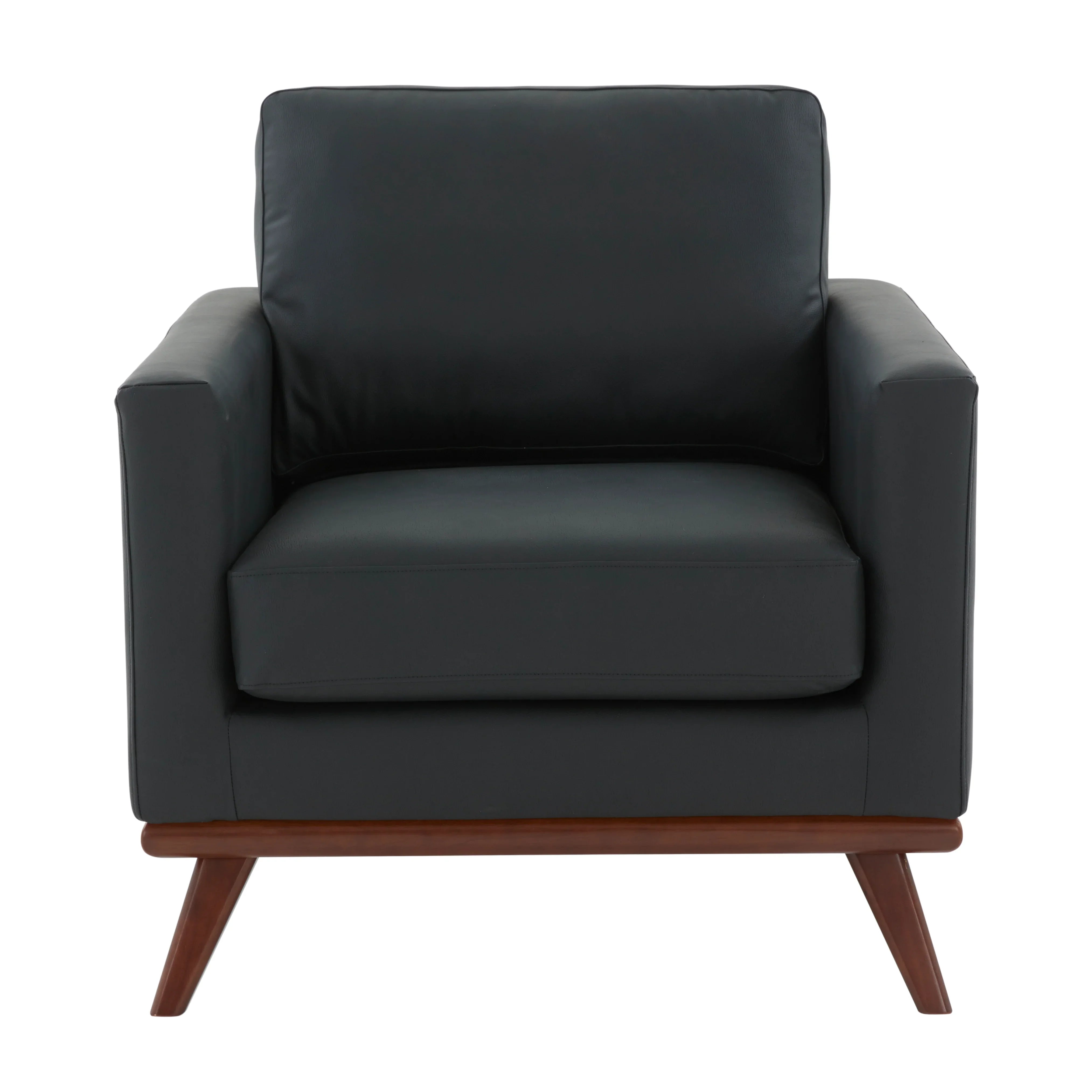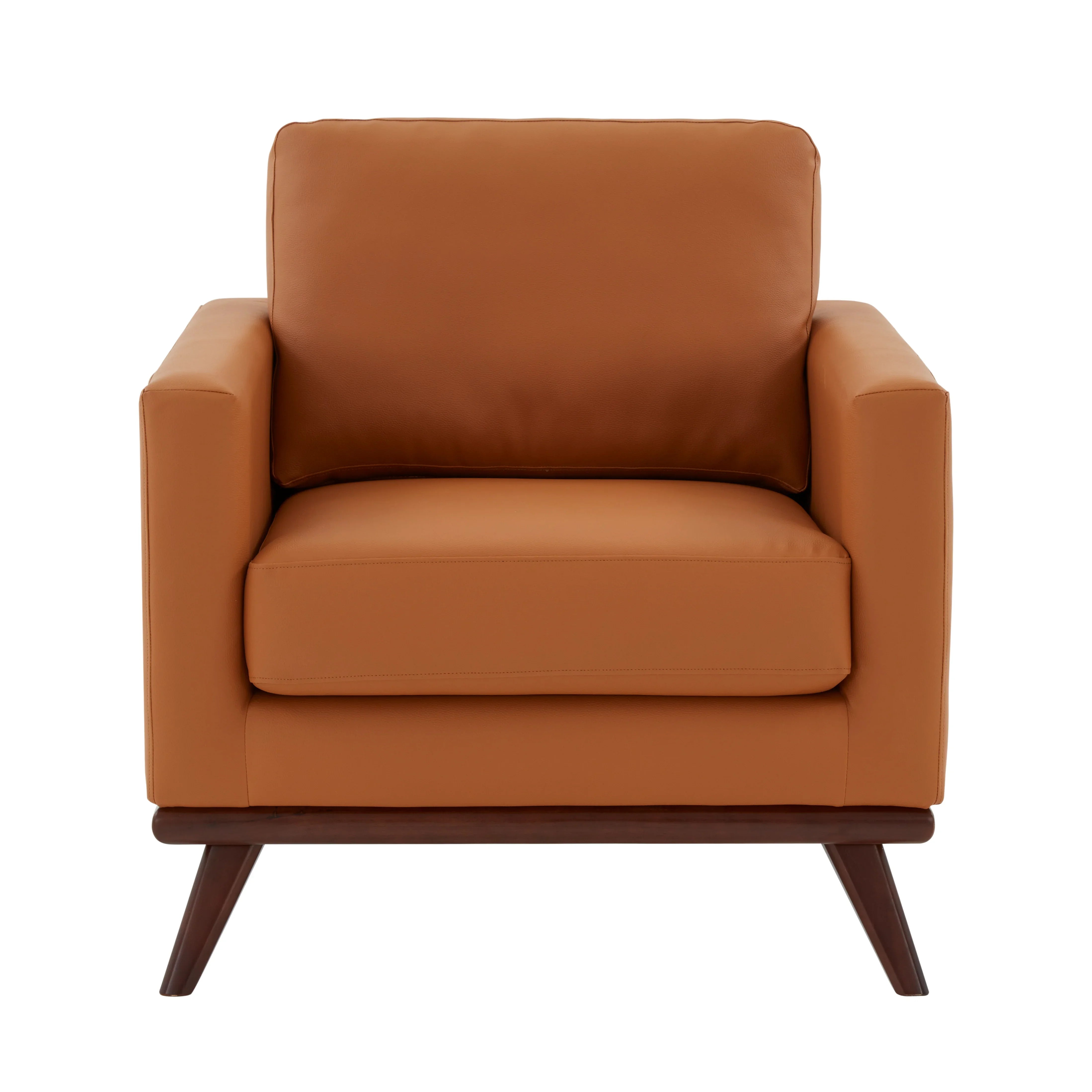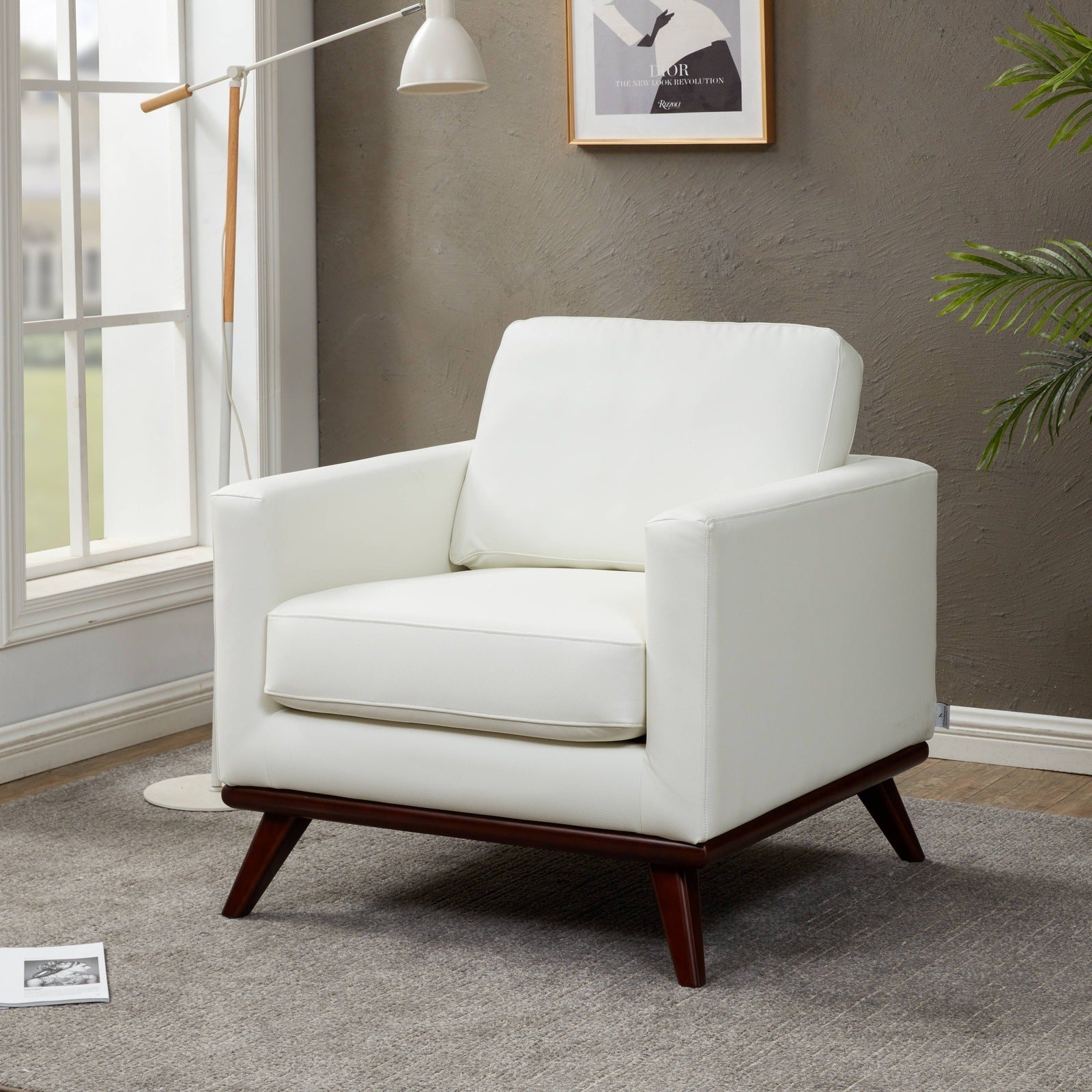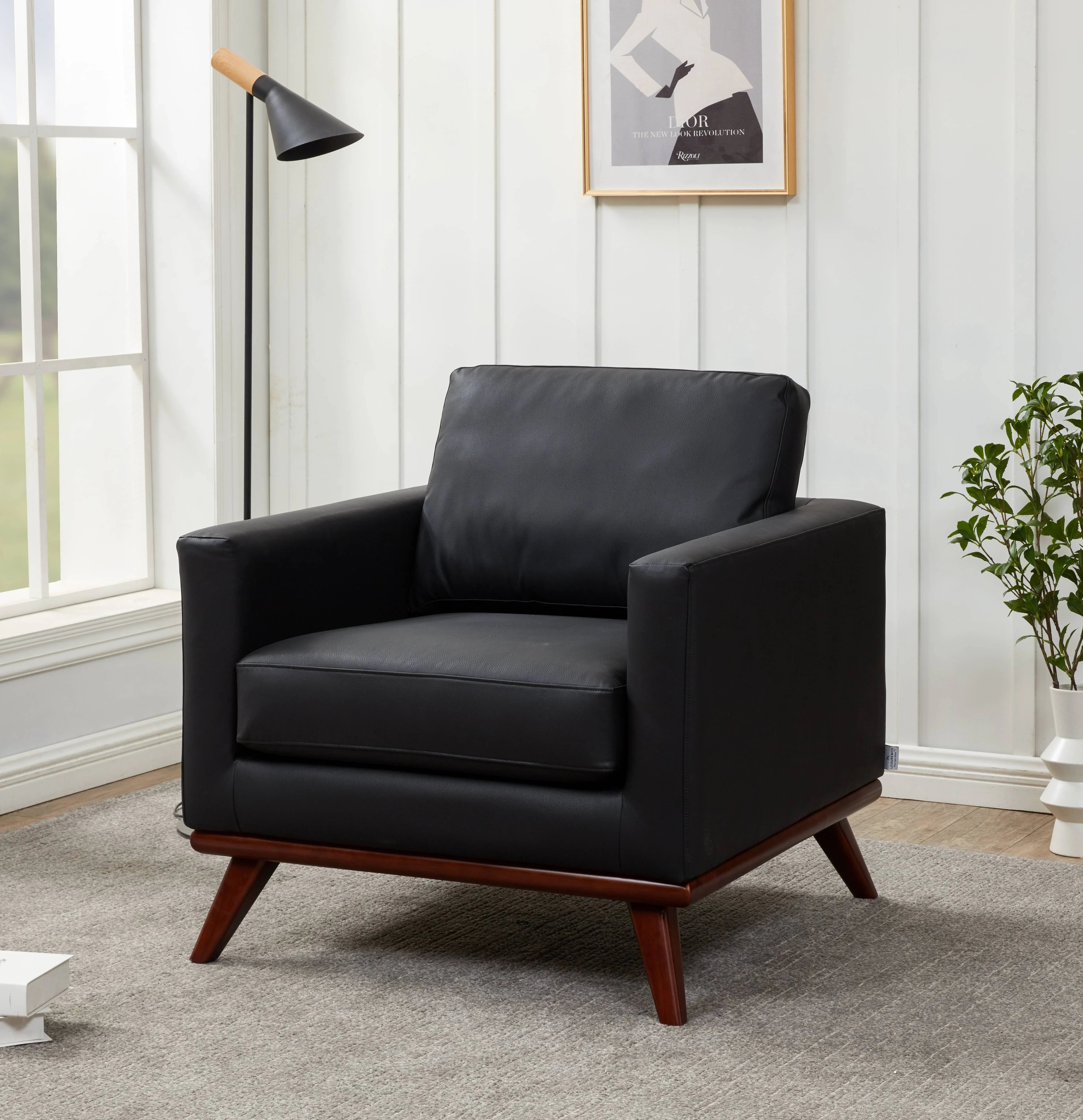 Chester Modern Leather Accent Arm Chair With Birch Wood Base