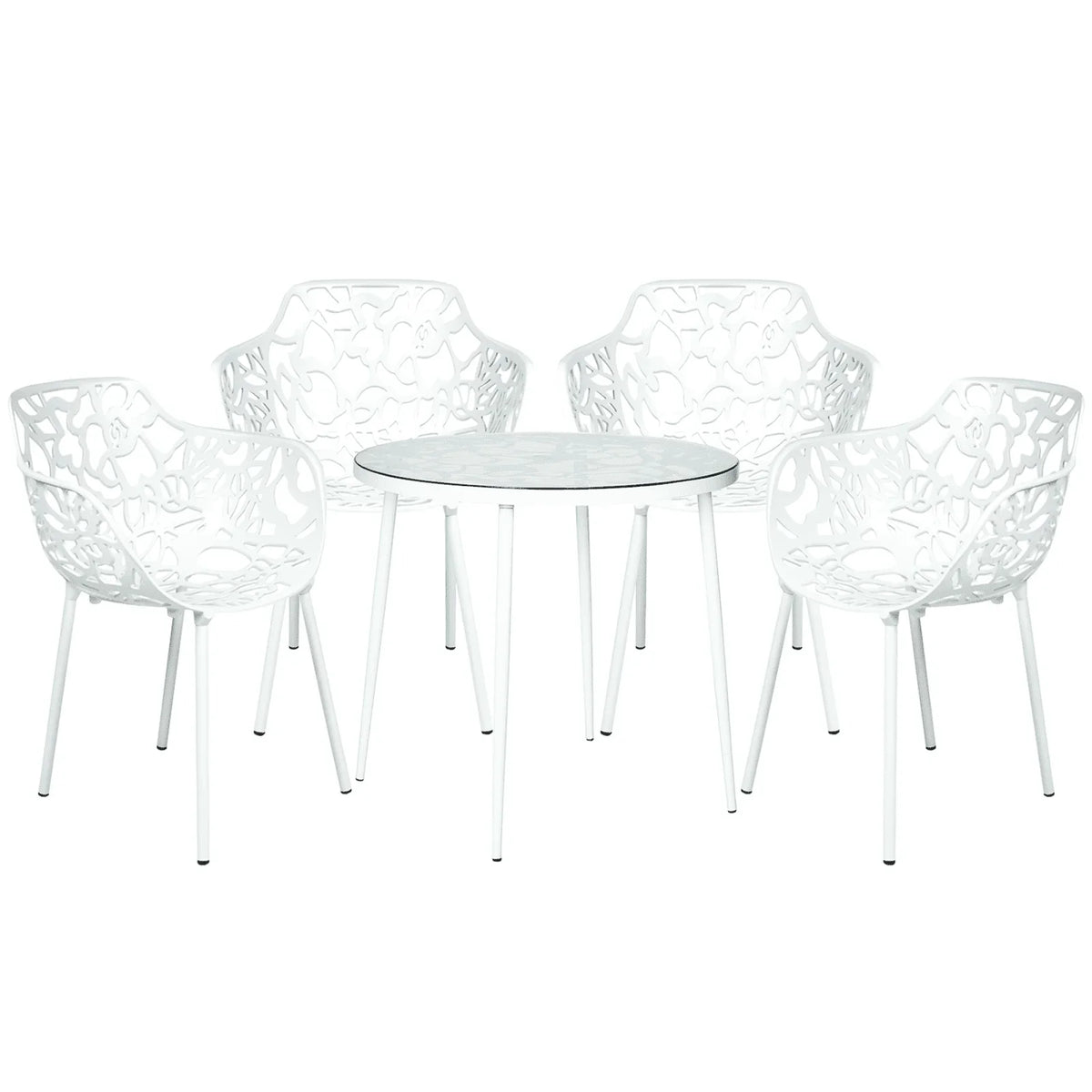 Devon 5-Piece Outdoor Dining Set: Aluminum Table with Glass Top & 4 Flower Armchairs
