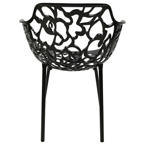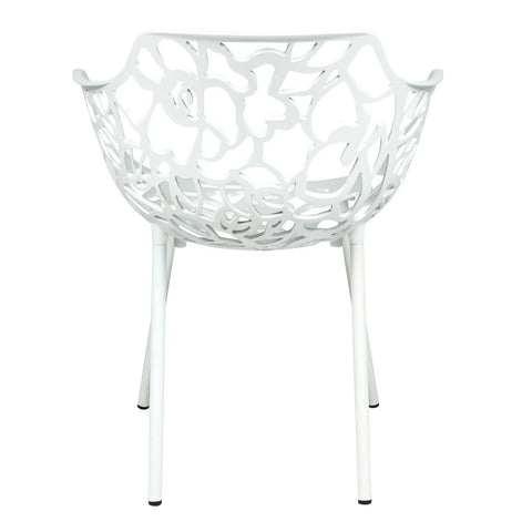 Upgrade your outdoor dining experience with our Devon Modern 5-Piece Aluminum Outdoor Dining Set. The sleek dining table with a tempered glass top and stackable flower design armchairs not only add a touch of elegance, but also provide durability and convenience. Enjoy alfresco dining in style!