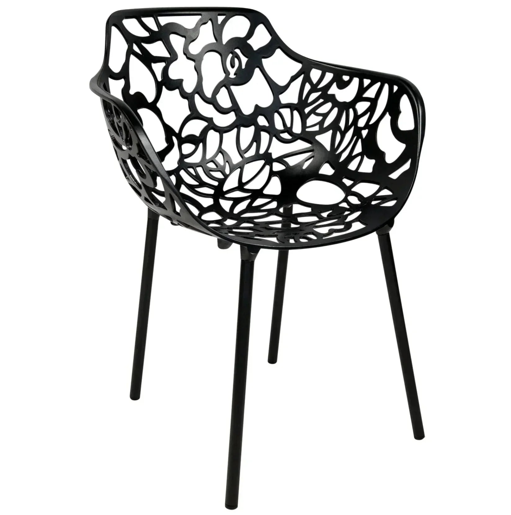 Devon Stackable Aluminum Outdoor Dining Armchairs with Flower Design