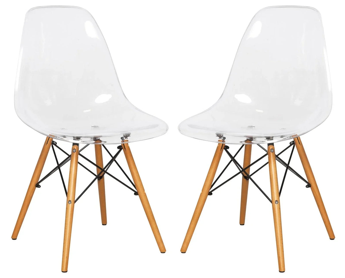 Dover Modern Molded Side Chair with Wood Base, Set of 2