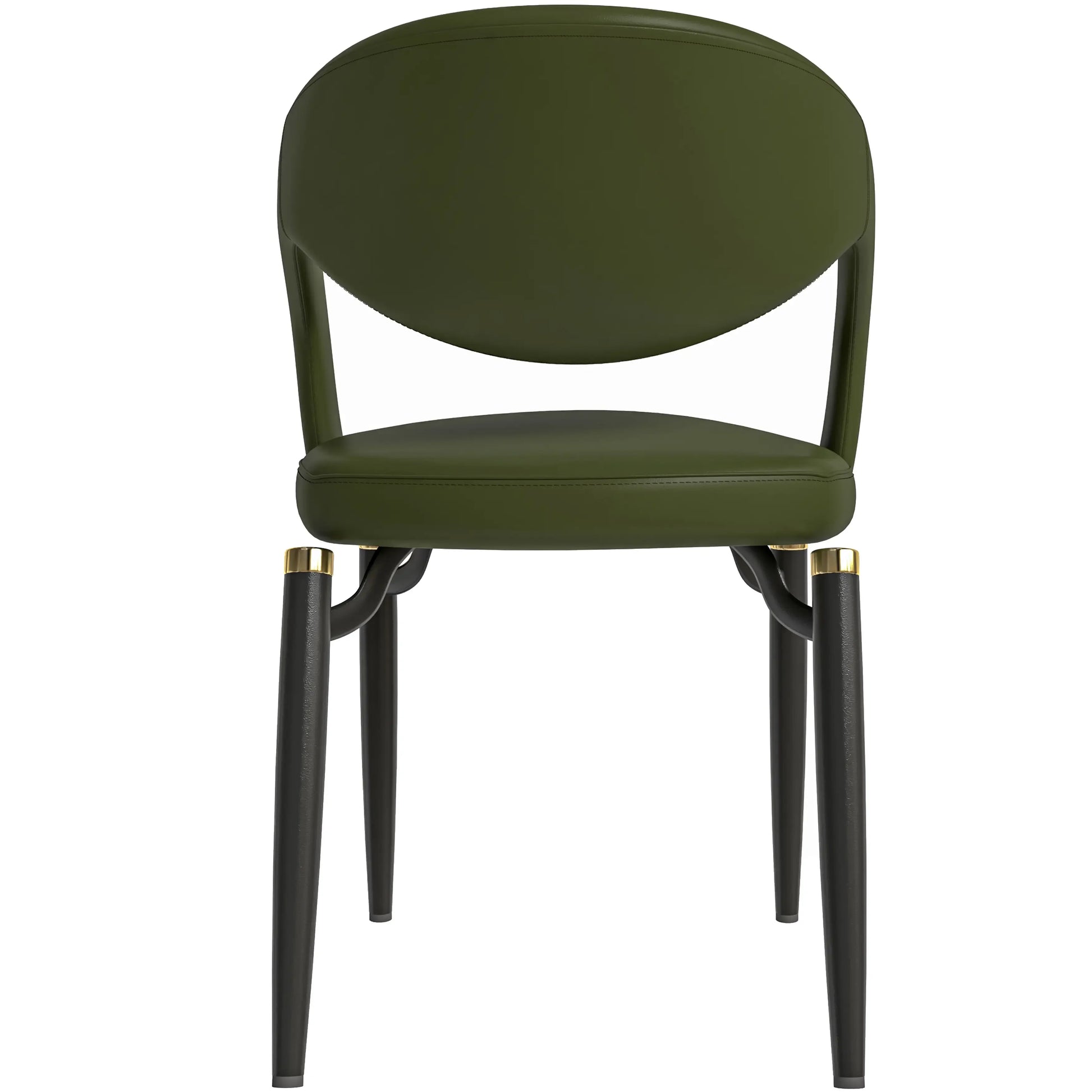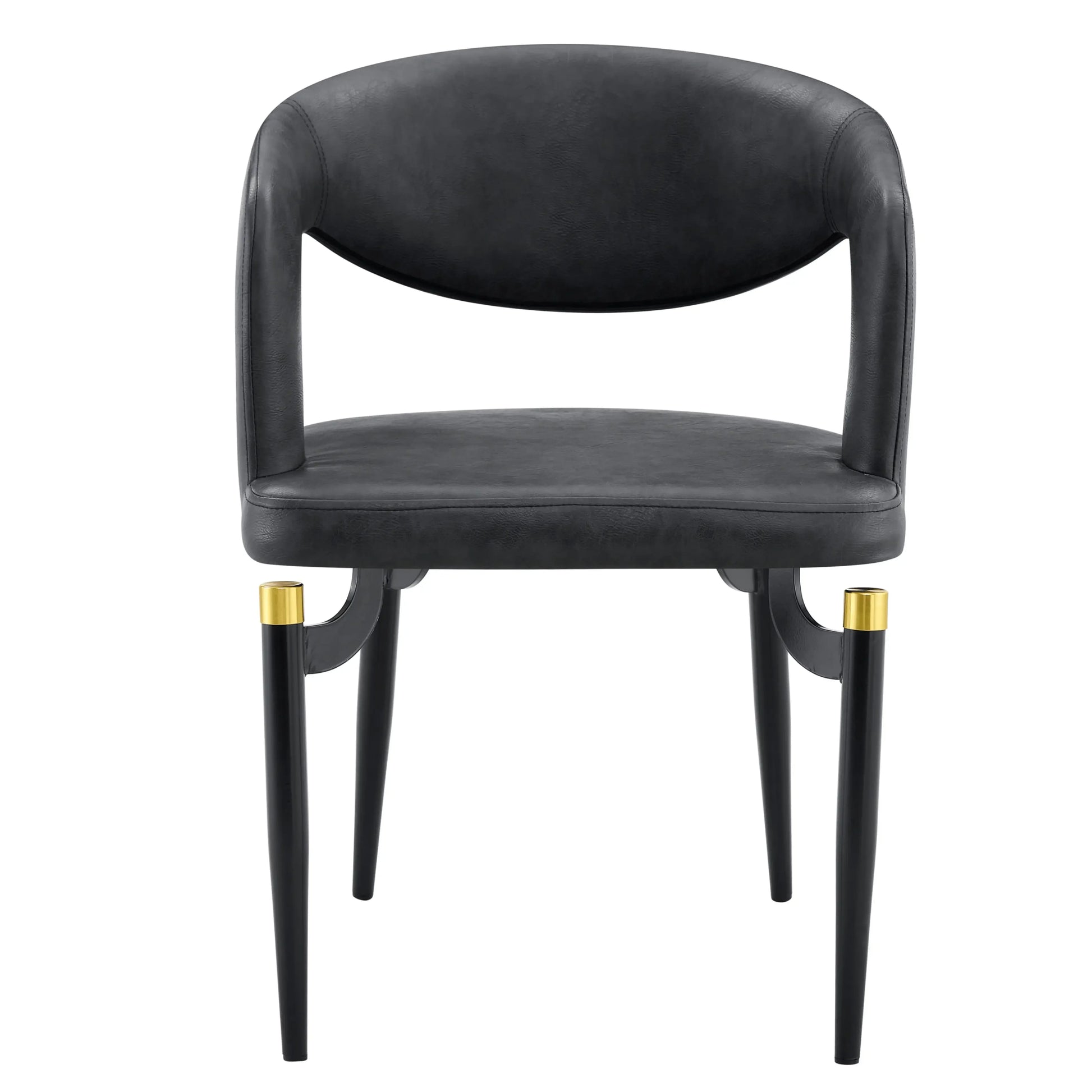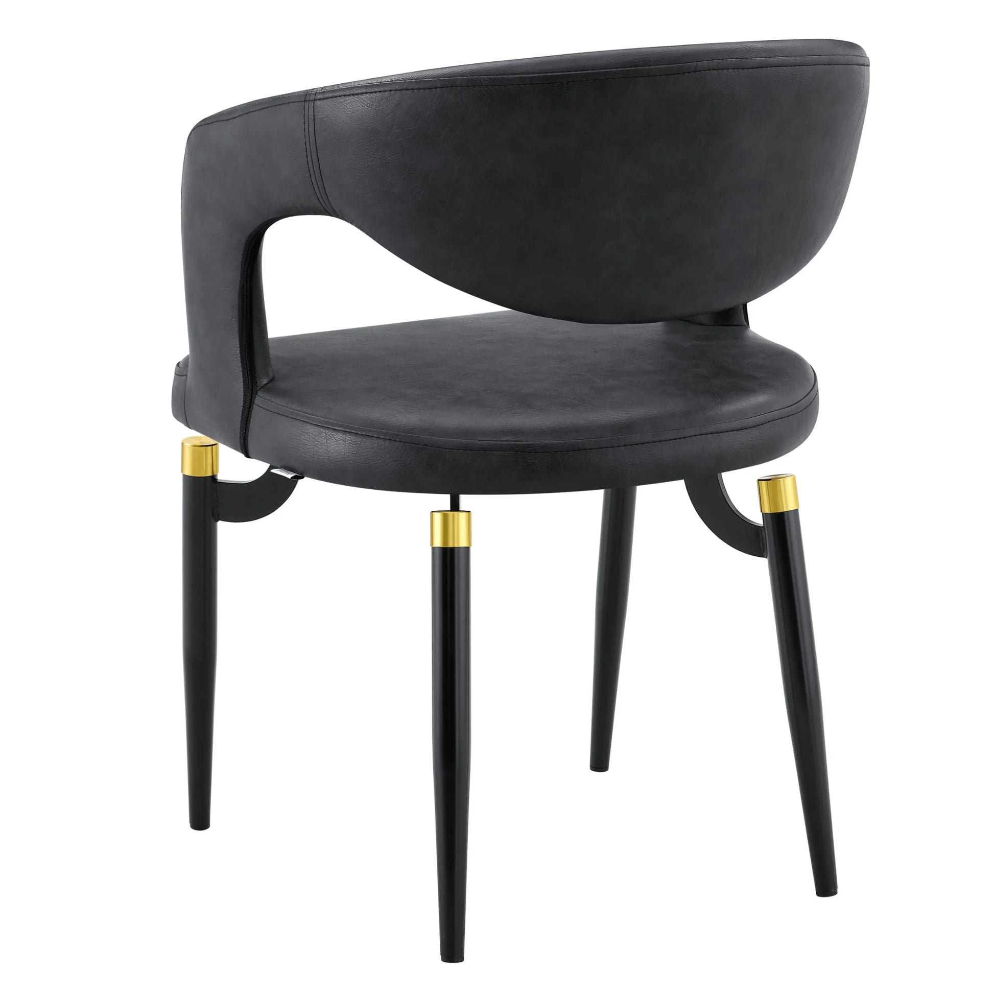 Entice Leather Dining Chair with Curved Open Back and Iron Legs