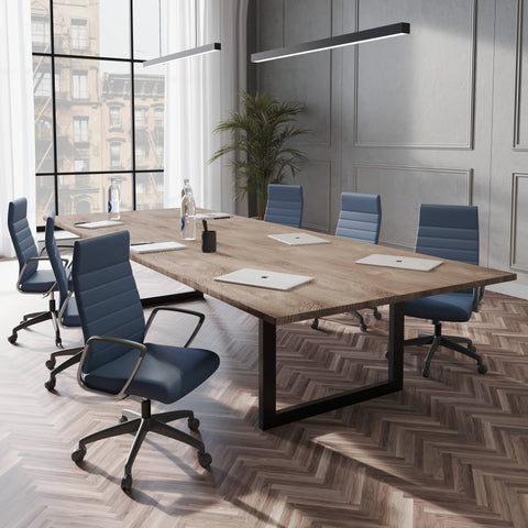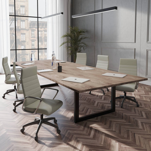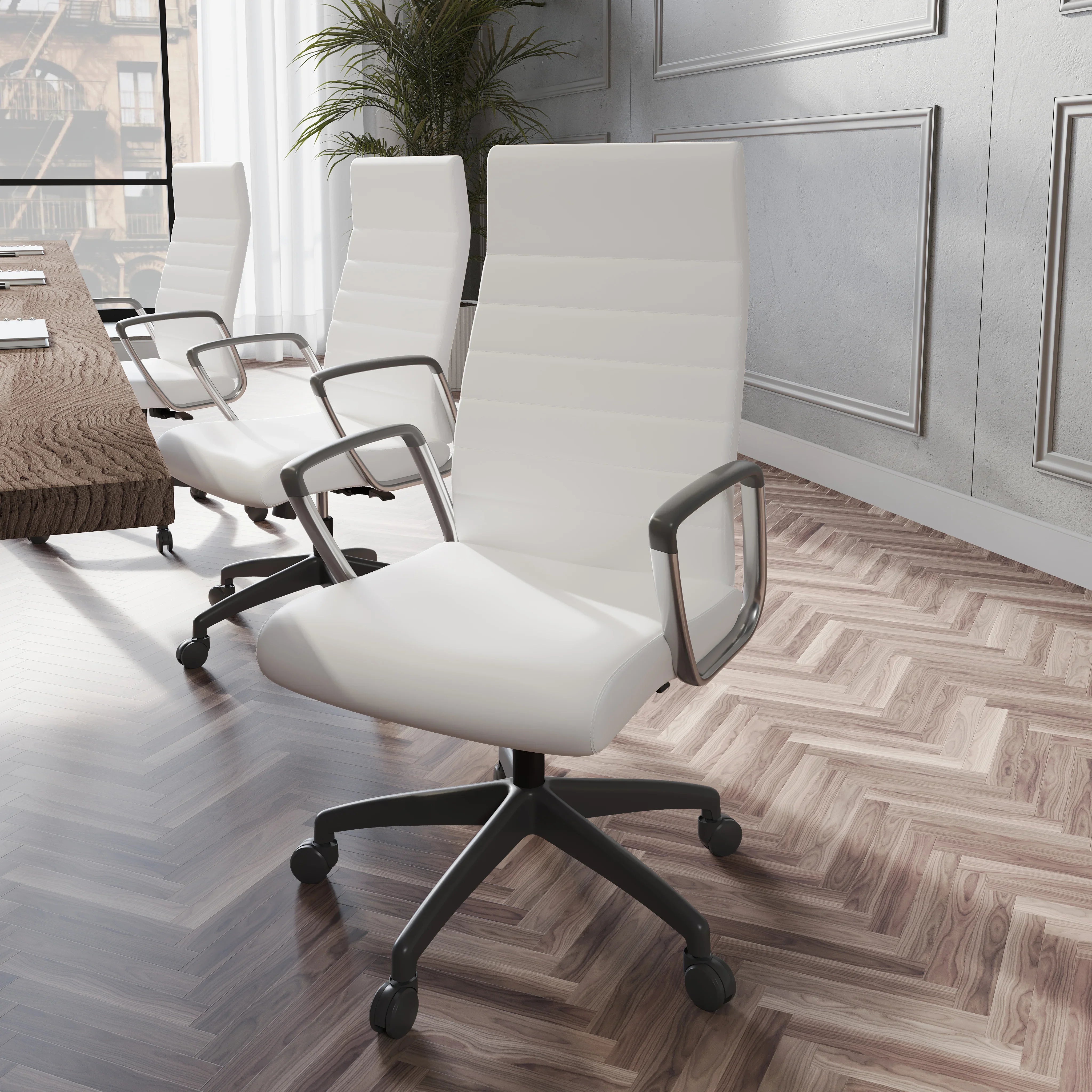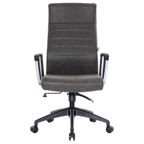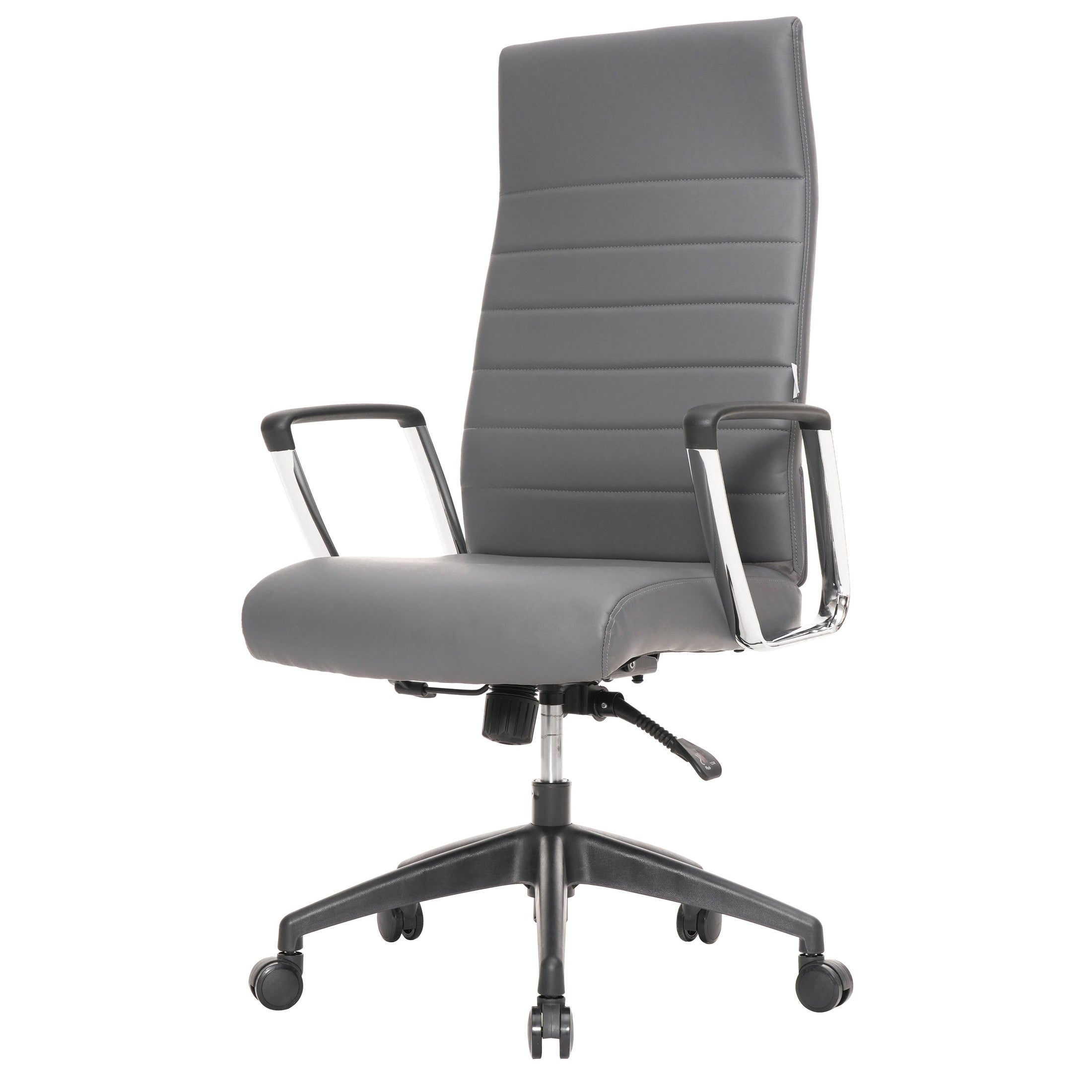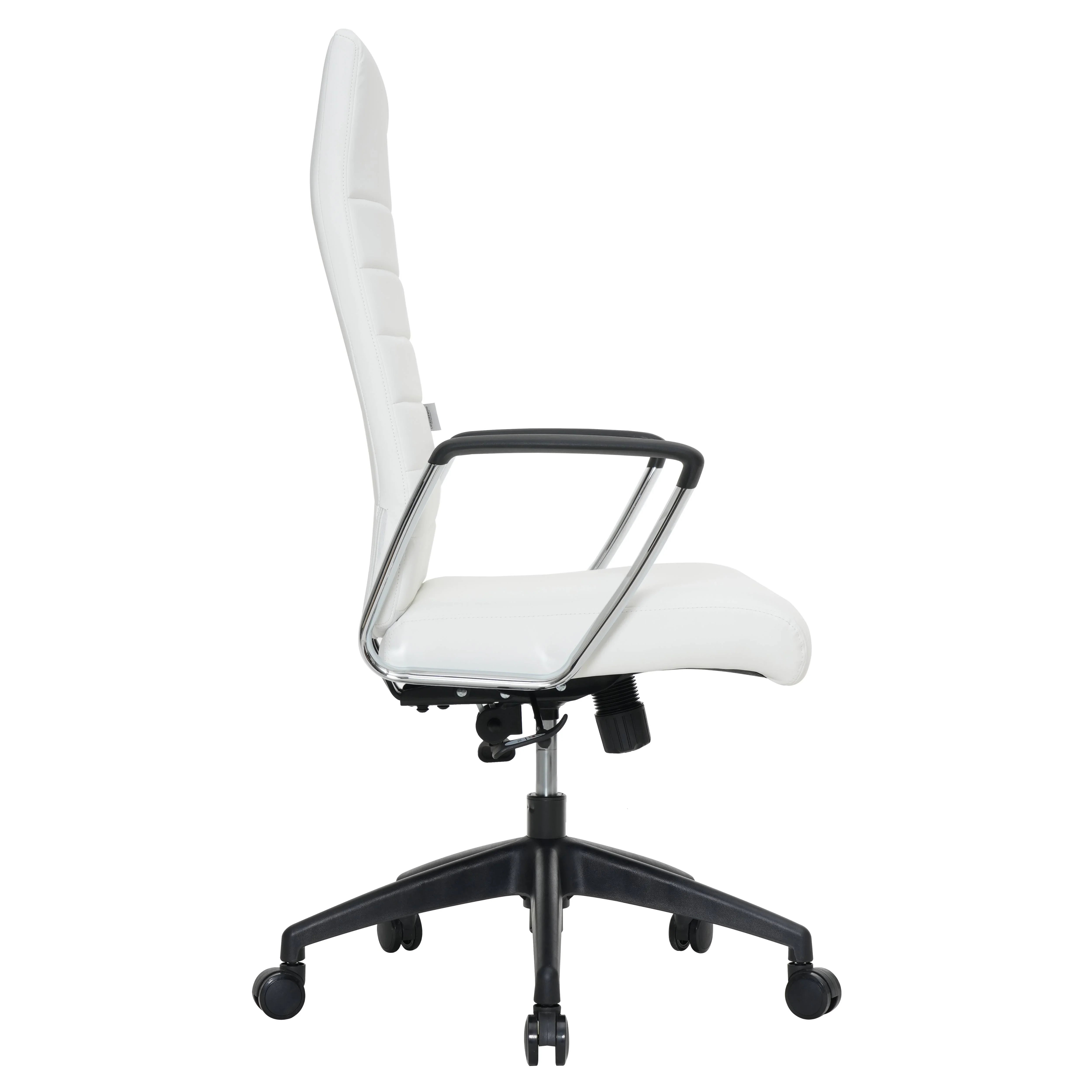 Upgrade your office with the luxurious Hilton High-Back Leather Office Chair. This professional-grade chair boasts plush foam and an ergonomic design for superior comfort and support during long workdays. With adjustable seat height and five dual-wheel casters, easily maintain proper posture and move around your workspace. Simple assembly is required.
