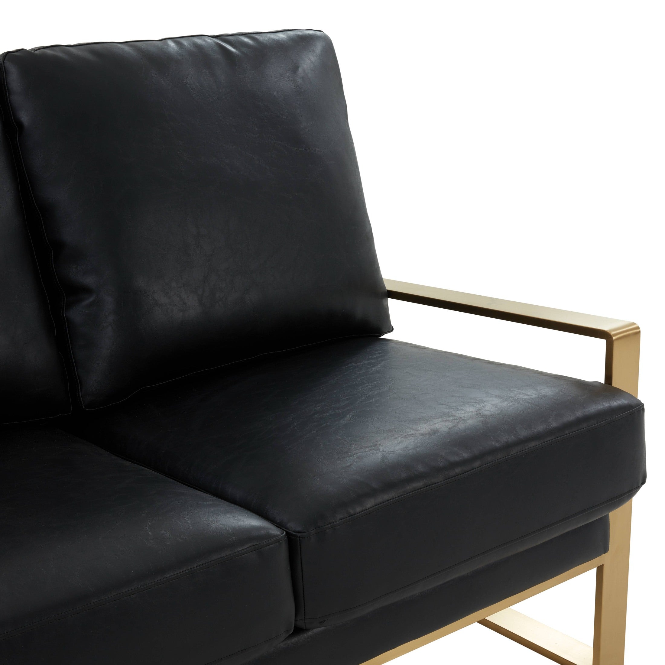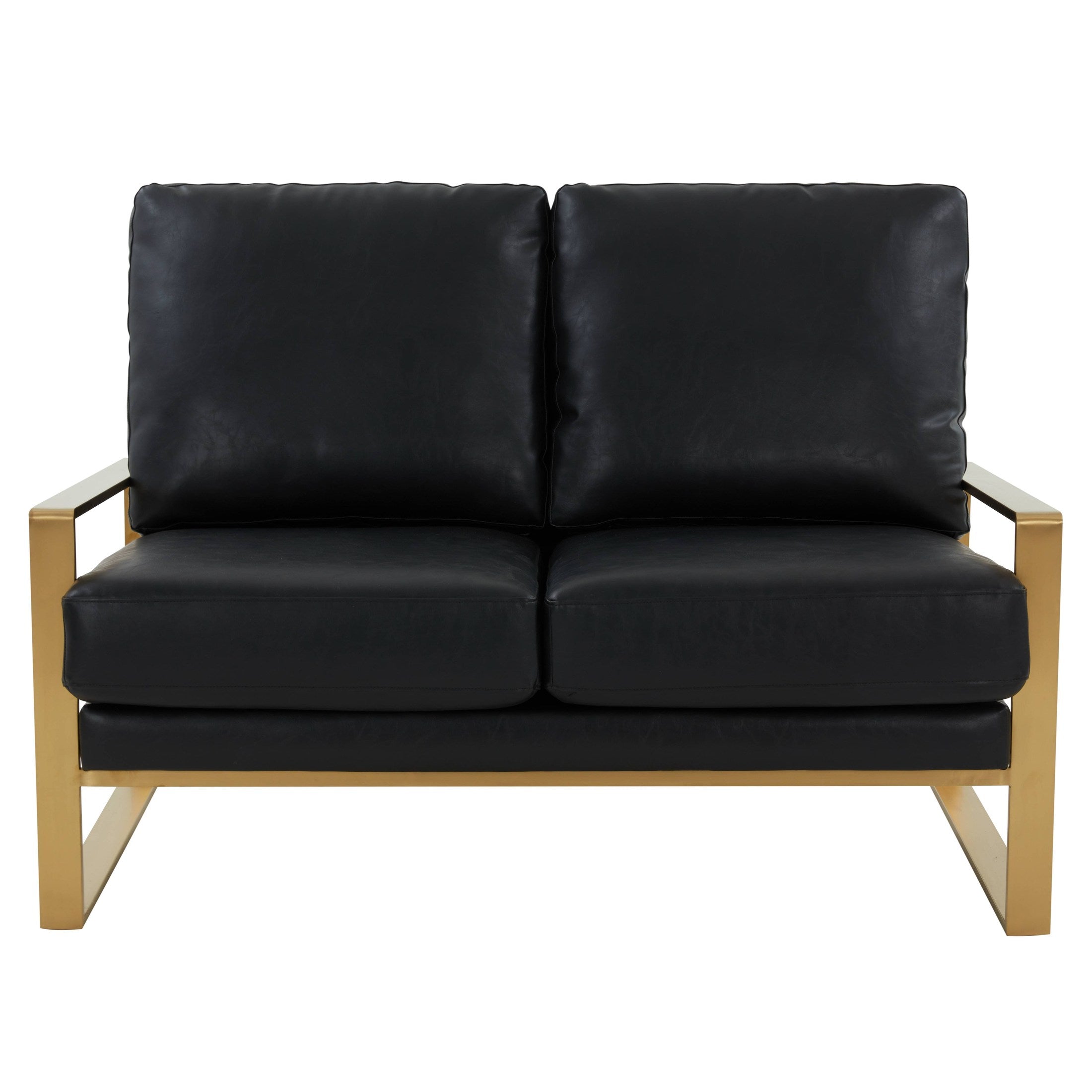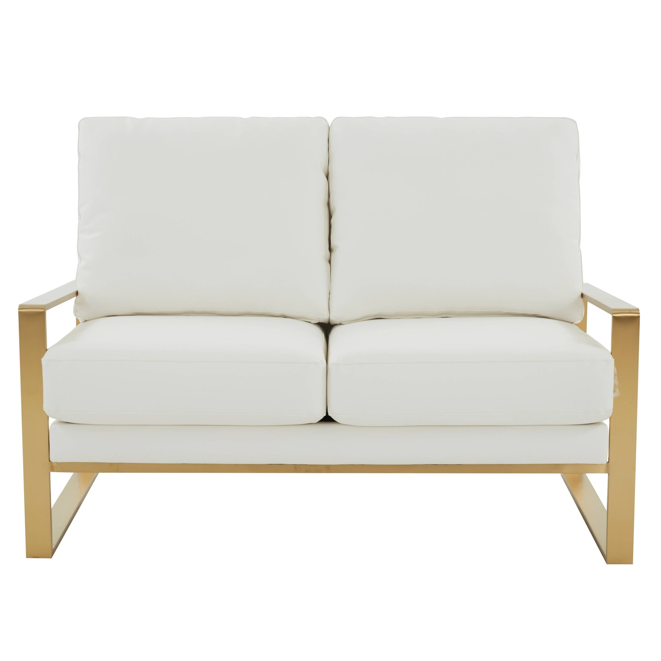 Elevate your home with the Gold Mirrored Frame Contemporary Velvet Loveseat from the Jefferson Collection. Its neutral velvet upholstery and sturdy gold metal frame bring luxurious sophistication to any room. With a generous seat size and comfortable armrests, this loveseat offers the perfect spot to relax. Its easy-to-maintain fabric makes it a practical yet stylish choice for any living room, bedroom, or office.