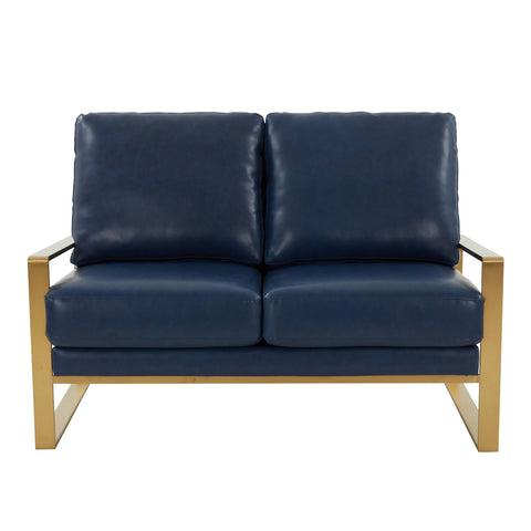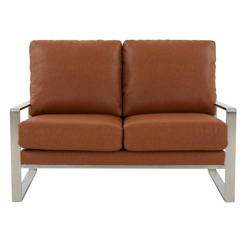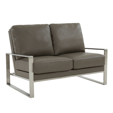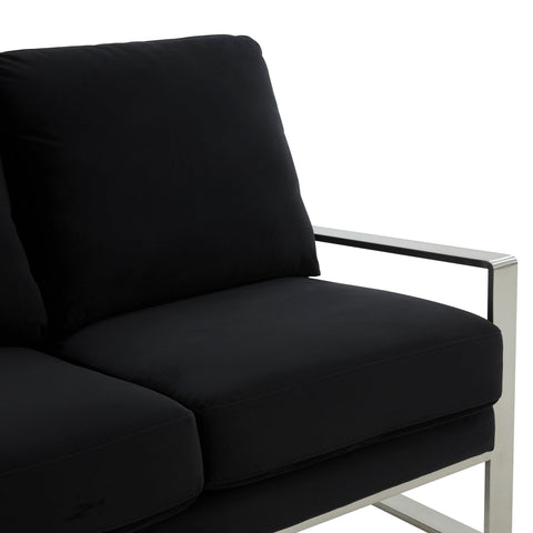 Jefferson Contemporary Velvet/Leather Loveseat with Stainless Steel Frame