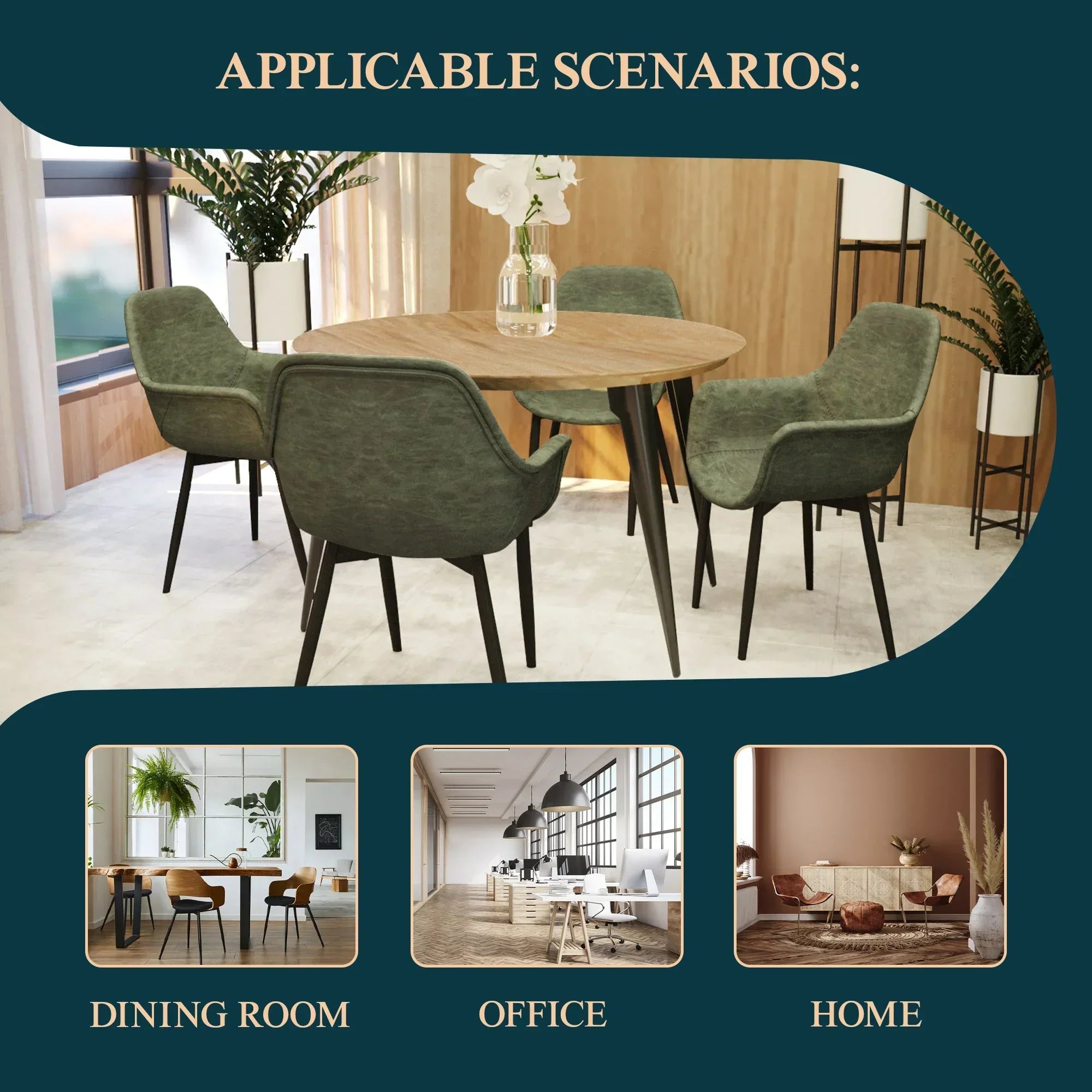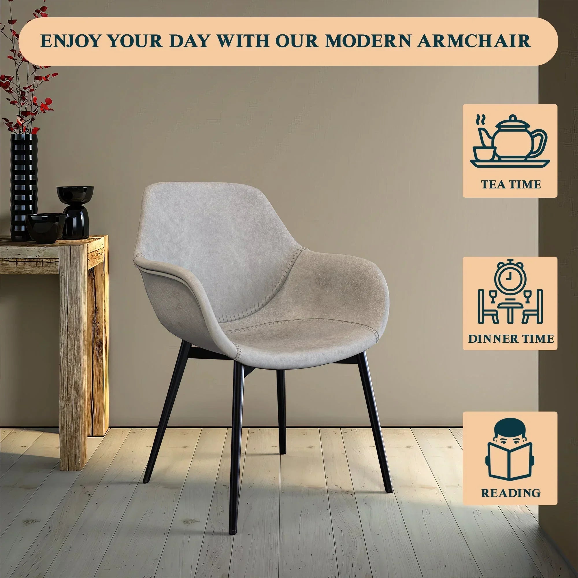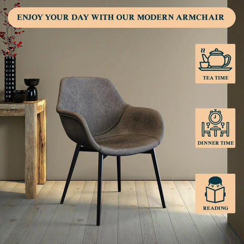 The Markley leather armchair features clean lines and stitched details for a Mid-Century Modern style. With armrests providing a convenient place to rest, this dining chair fuses function and fashion. Perfect for your dining room, home, or office, it offers a sturdy, stylish seating option that exceeds expectations.