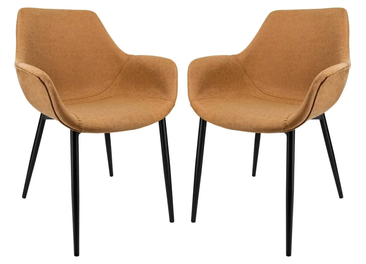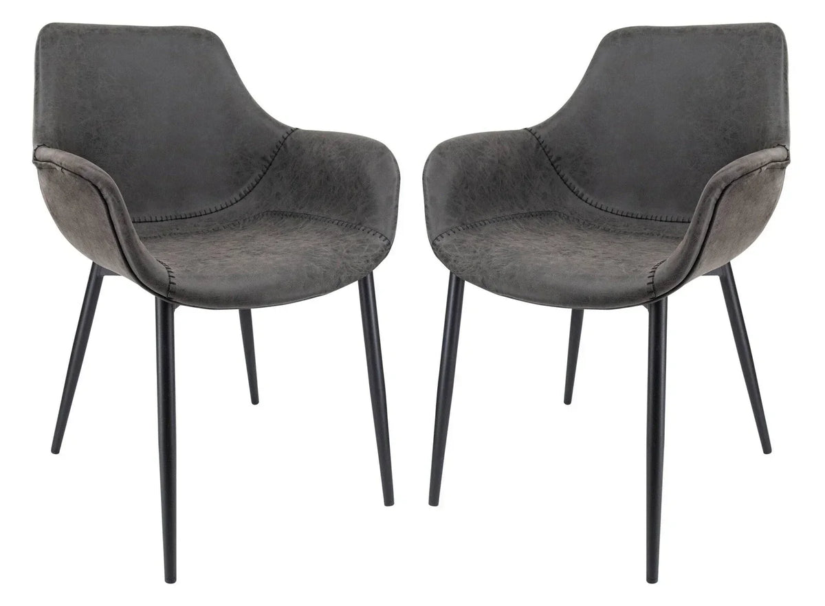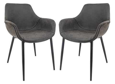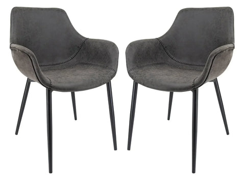Markley Modern Leather Dining Arm Chair With Metal Legs Set of 2 – Elax Furniture Skip to content