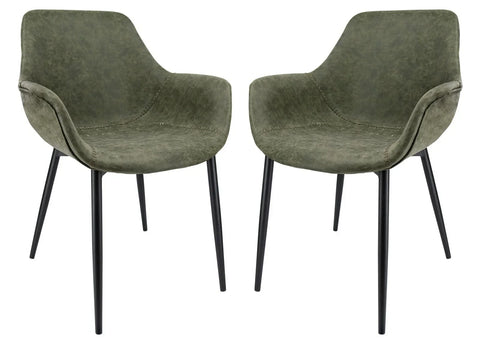 Markley Modern Leather Dining Arm Chair With Metal Legs Set of 2