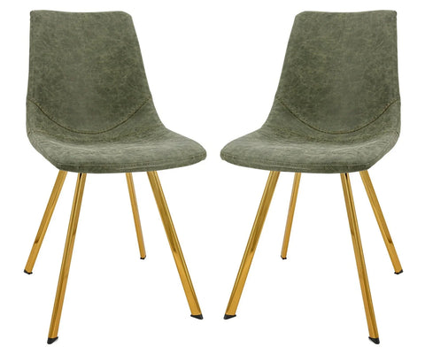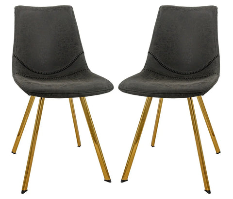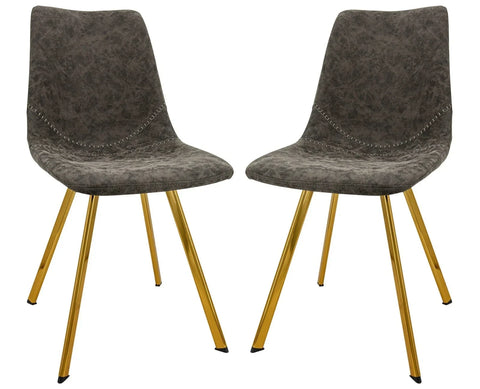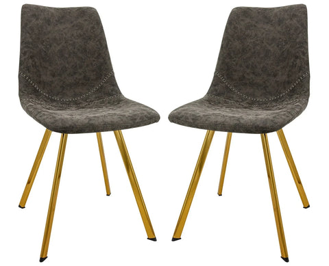 Markley Modern Leather Dining Chair With Gold Legs Set of 2
