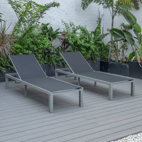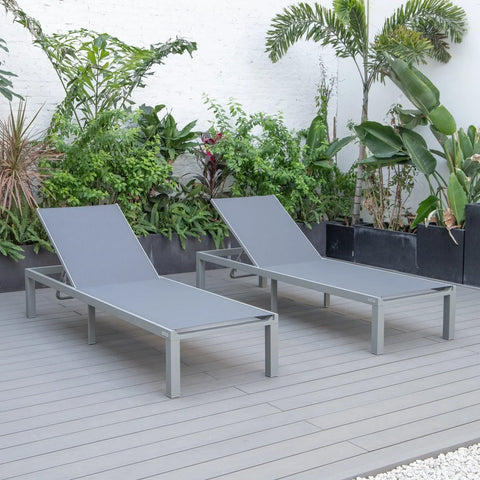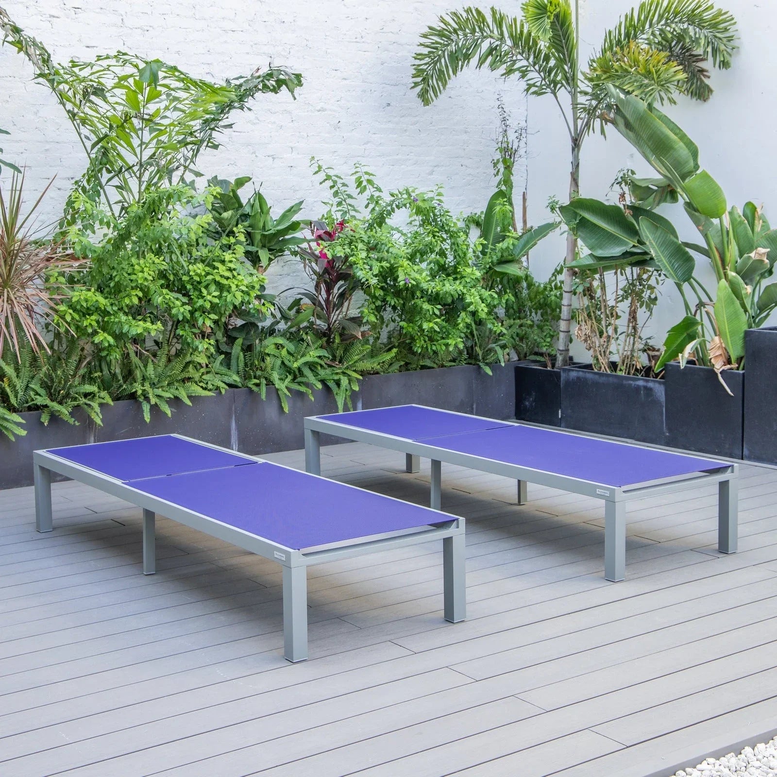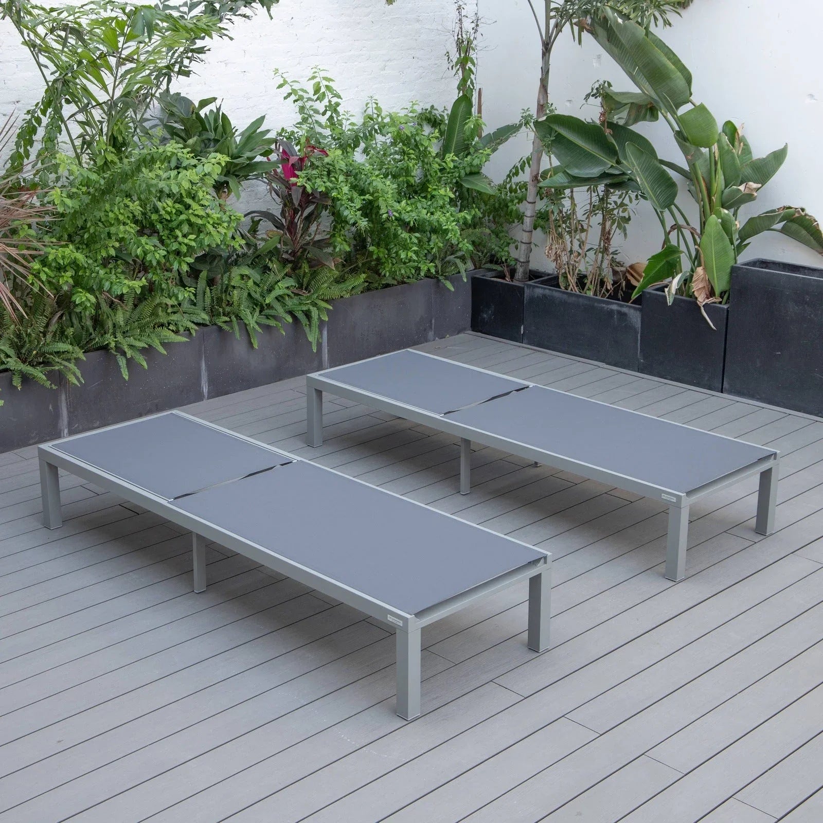 Marlin Patio Chaise Lounge Chair with Grey Aluminum Frame, Set of 2