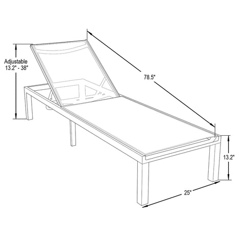 Turn your backyard into the sunny sanctuary you deserve with this stylish patio chaise lounge chair this will be a great addition to any outdoor space. It is constructed with lightweight aluminum, making it durable and easy to move. The Patio chair features a Sling back for breathability and comfort, as well as providing extra ventilation during hot summer days. The adjustable backrest allows you to recline to the perfect angle for relaxation. The ergonomic design of the patio chaise lounger ensures maximum comfort, while the sleek aluminum finish adds a modern touch and makes the perfect addition to your patio furniture set. This Outdoor lounge chair is the perfect choice for lounging around the pool, relaxing on the patio, or just enjoying a peaceful afternoon in the sun. This chair will take your time at the pool, in your backyard, or any outdoor space to a whole new level. The Patio Chaise Lounge Chair is the perfect option for any outdoor space and provides luxurious comfort and style to your modern Home.