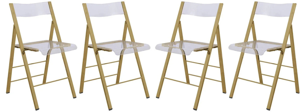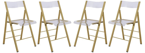 Menno Modern Acrylic Gold Base Folding Chair, Set of 4