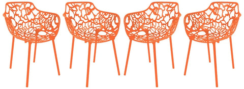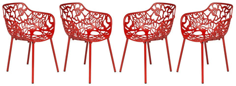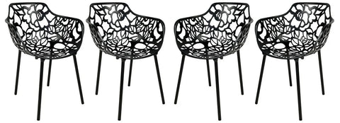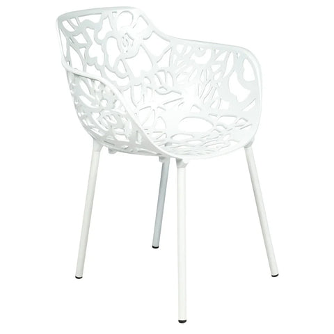 Devon Aluminum Indoor Outdoor Dining Armchairs with Flower Pattern and Stackable Design Set of 4