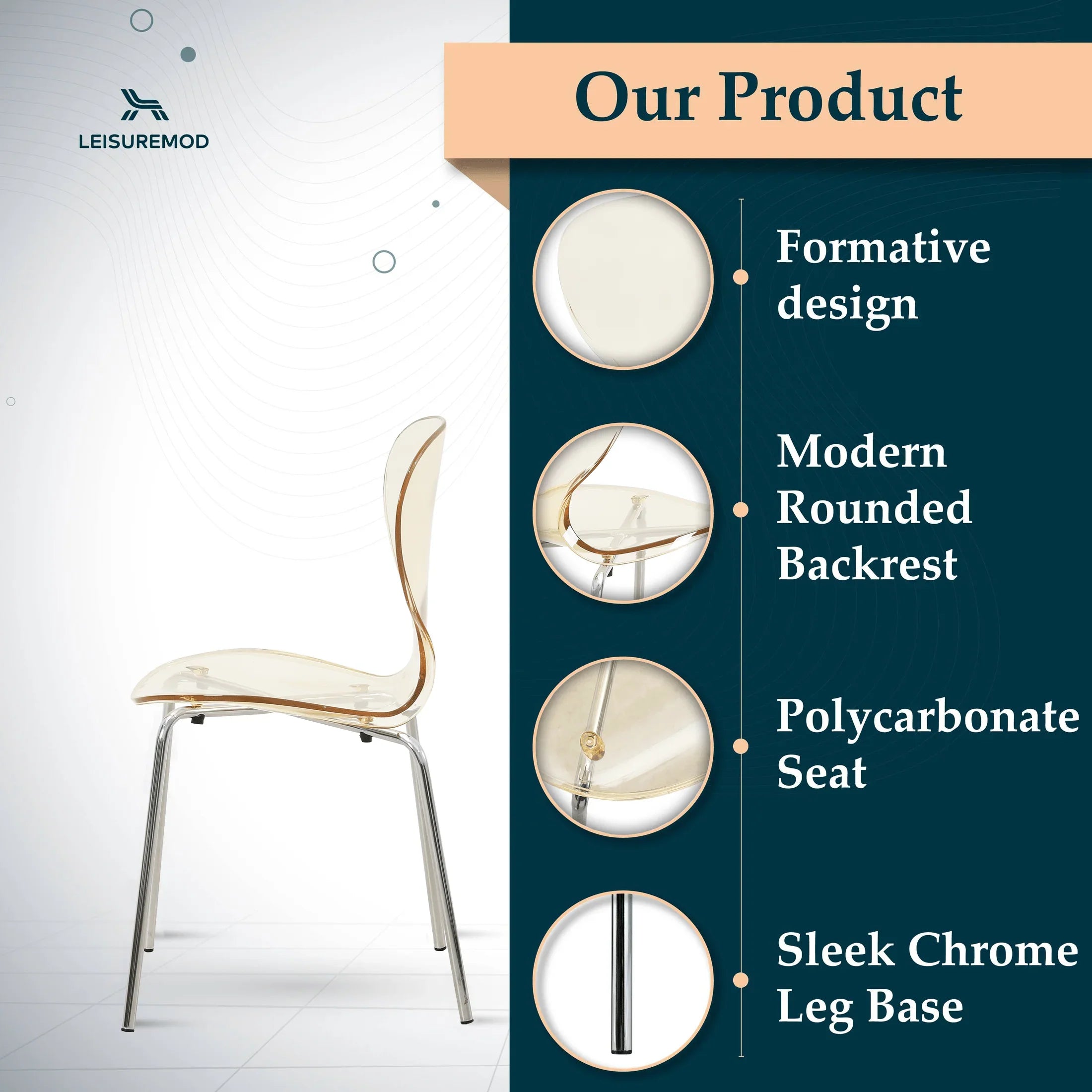 The Oyster Dining Chair is perfect for any modern dining room. With its sleek design, this lightweight chair elegantly complements its surroundings with a minimalistic touch. Its unique figure constructed of high-quality Plastic plastic is flattered by its thin yet sturdy chrome leg base. Simple yet elegant, this chair is the essence of class.