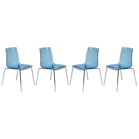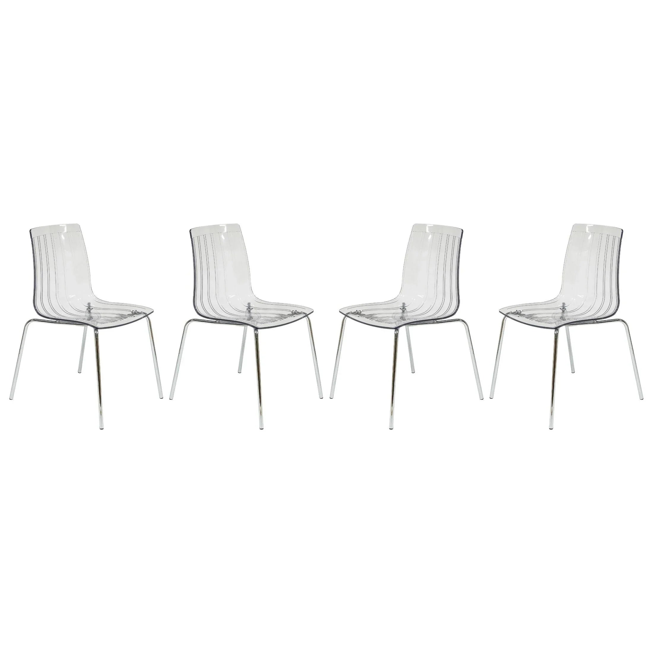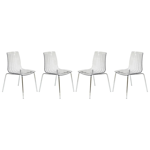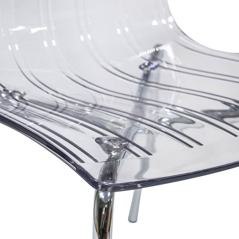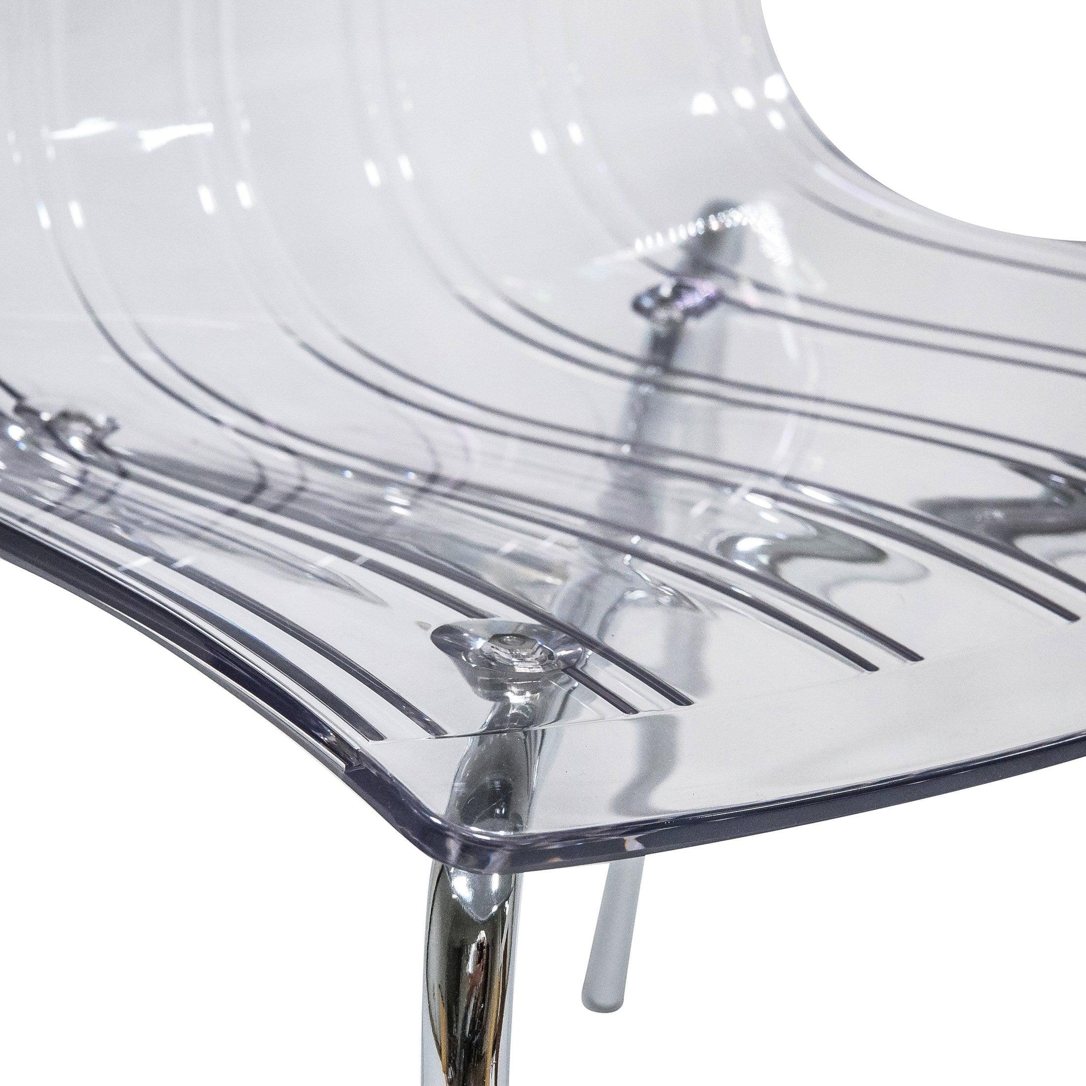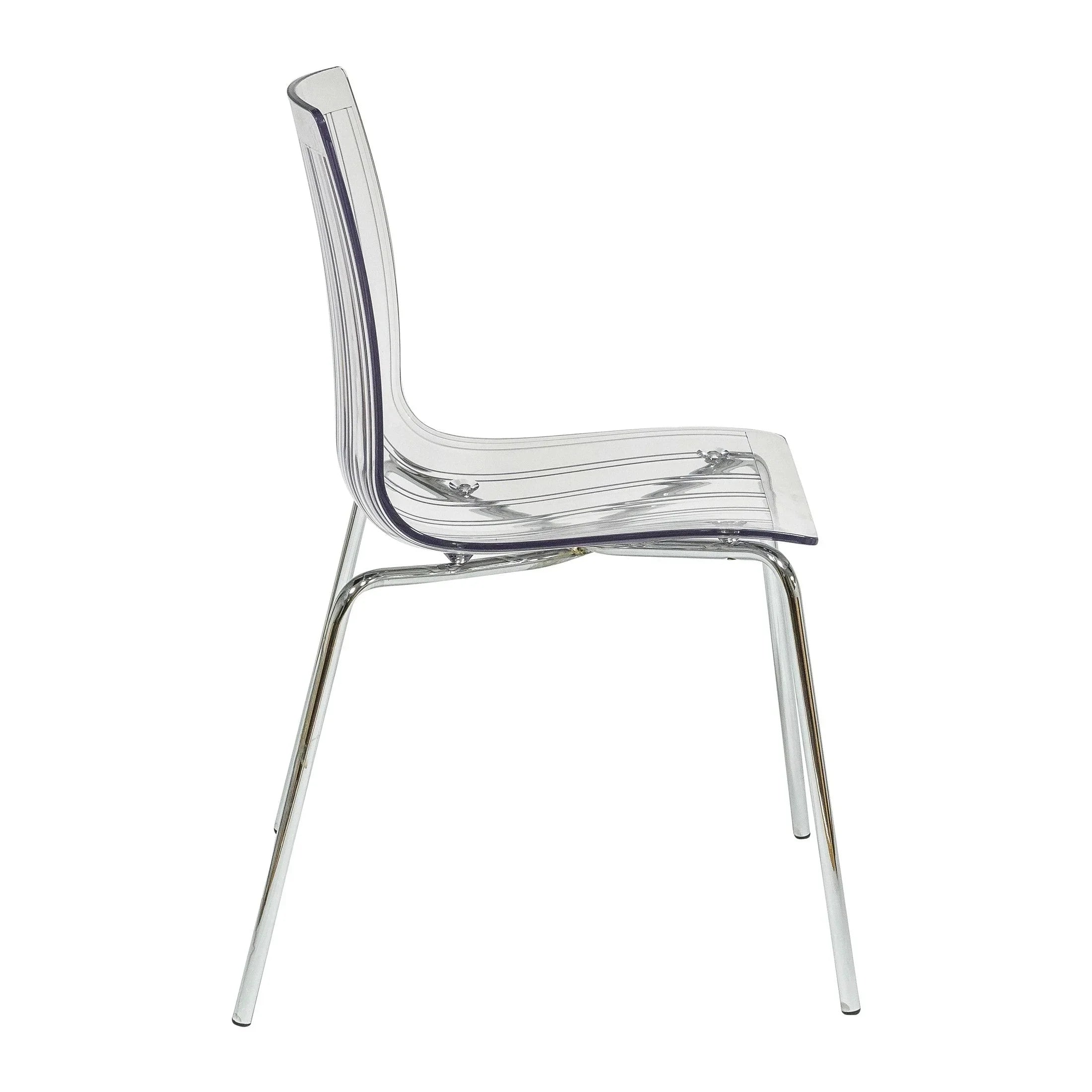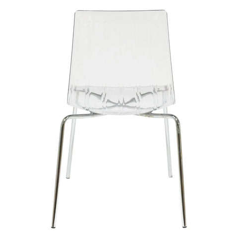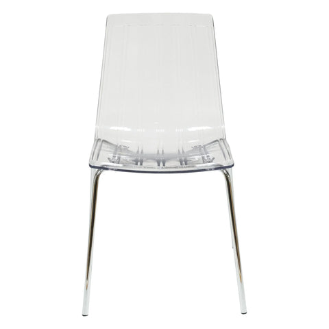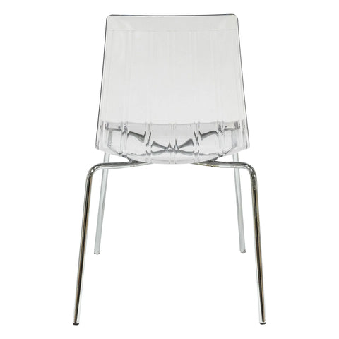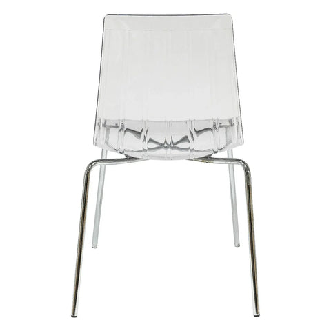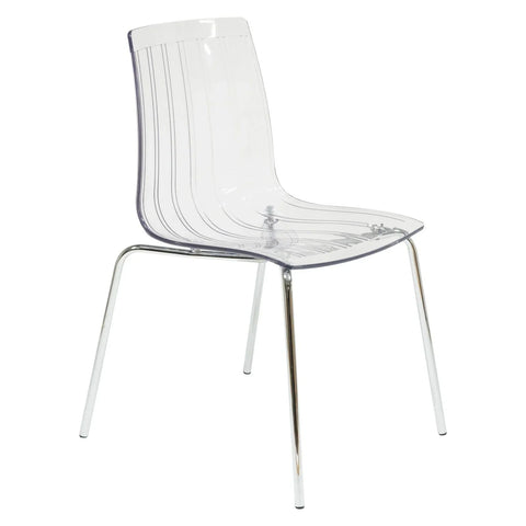 The Ralph Dining Chair is renowned for its sturdy craftsmanship??ut even more for its distinctive pinstripe-like design. Each transparent seat brings a touch of sophistication to any space. Strong chrome legs shine with mirror-like mystique, while the chair?? ergonomic back eases the body. Display them boldly in a dining room, lounge or reception area.