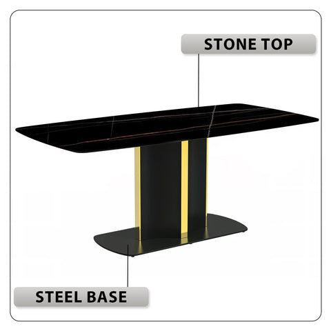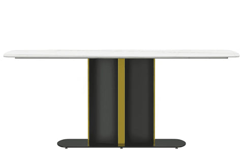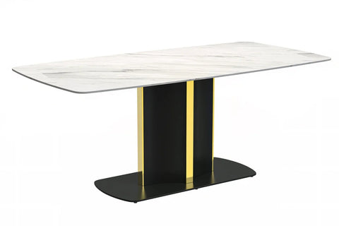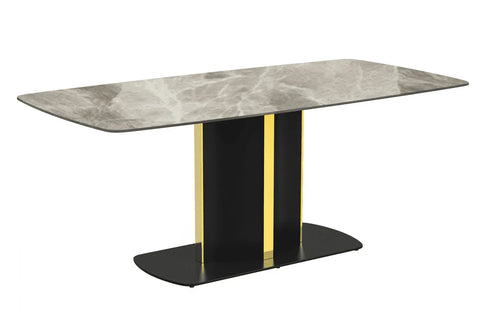 Sylva Rectangular Dining Table with Glass/Sintered Stone Tabletop in Gold Steel