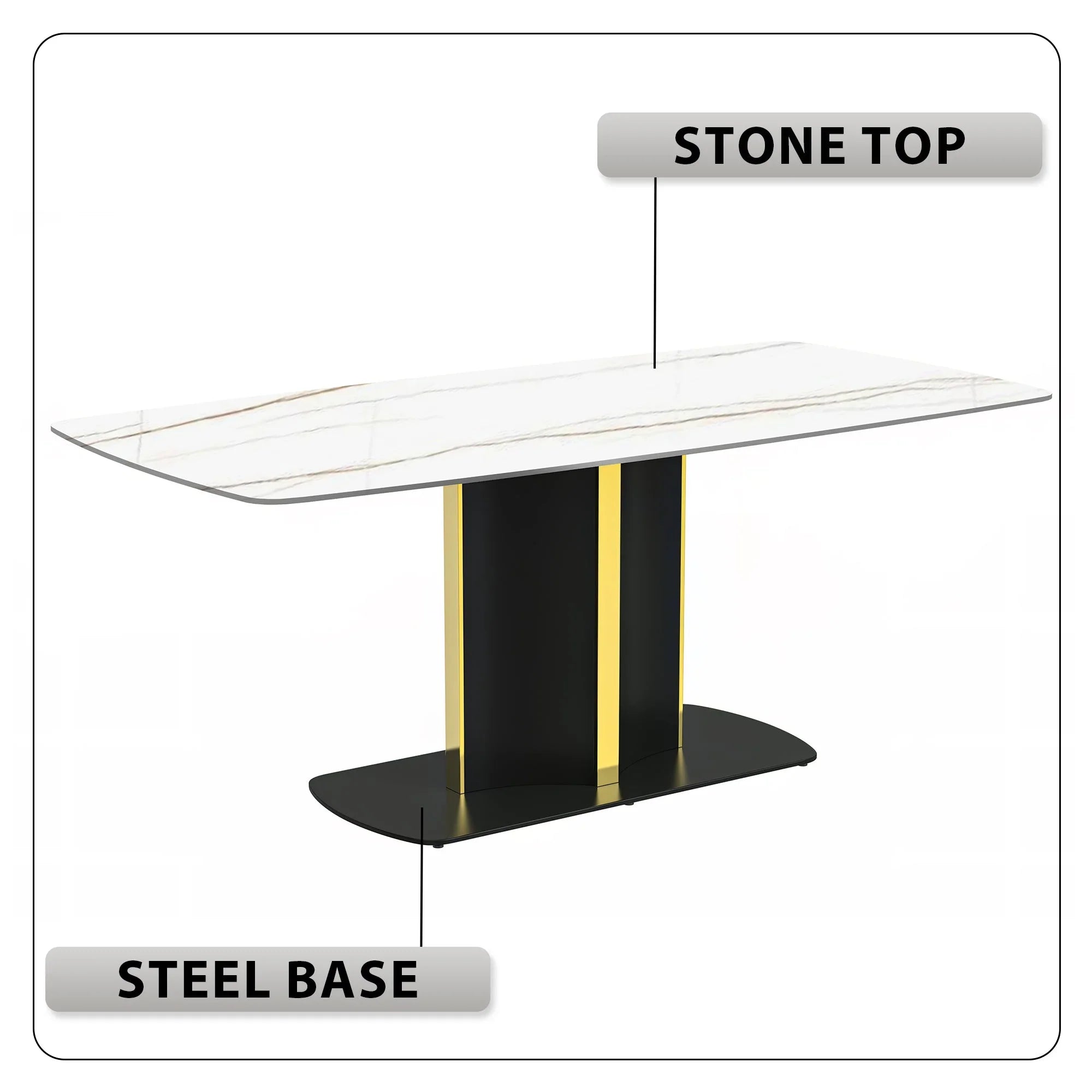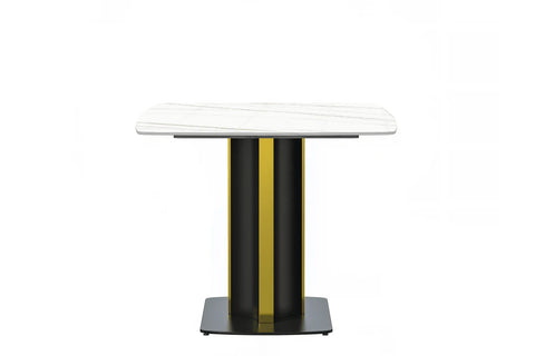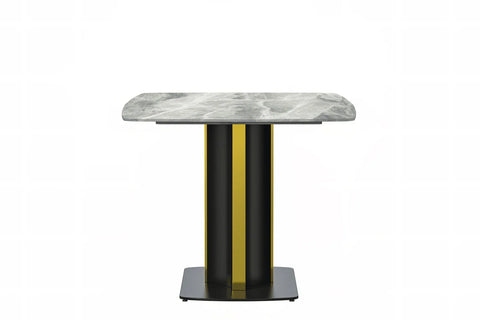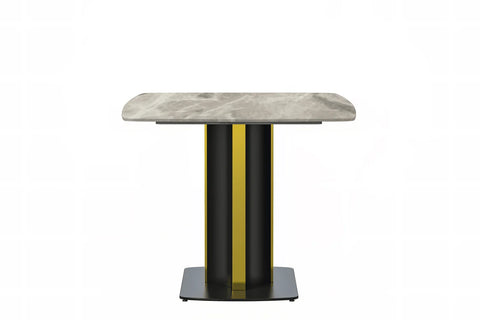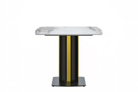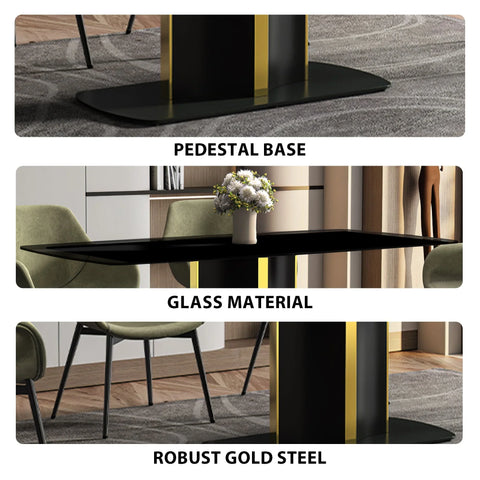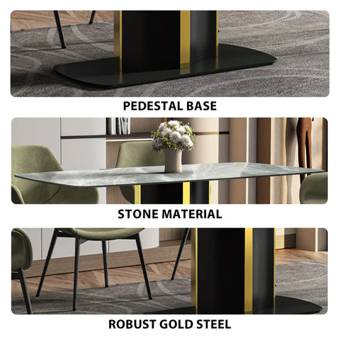 Elevate your dining experience with the Sylva Modern Rectangular Dining Table. Its sleek and spacious 55" tabletop, made of sintered stone or glass, is both durable and easy to maintain. The elegant gold steel base adds a touch of opulence, making it a stunning addition to any kitchen or dining room.