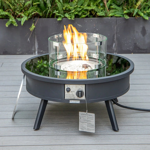 Walbrooke Modern Outdoor Round Fire Pit Table with Powder-Coated Aliuminum Frame