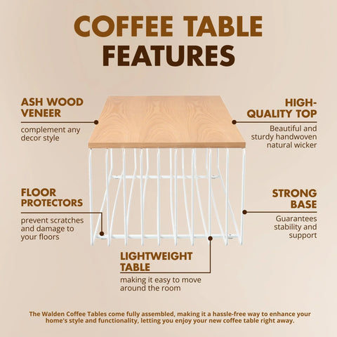 Add a touch of contemporary style to your living space with the Walden Rectangular Coffee Table. Made from high-quality materials, this durable coffee table features an ash wood veneer top, perfect for supporting drinks and snacks. The sleek black steel frame ensures stability and the natural wood color adds warmth and charm to any room. Lightweight and designed for long-term use, this coffee table is a must-have for any modern home.