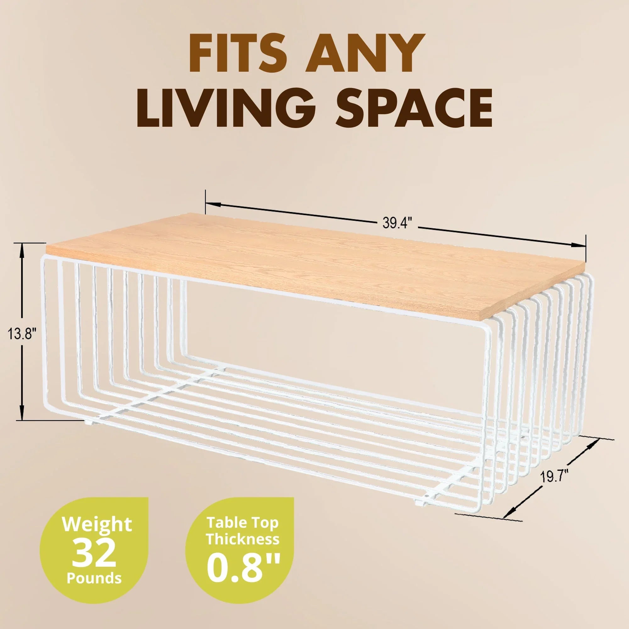 Walden Rectangular Coffee Table with Ash Wood Tabletop in Black Steel Frame