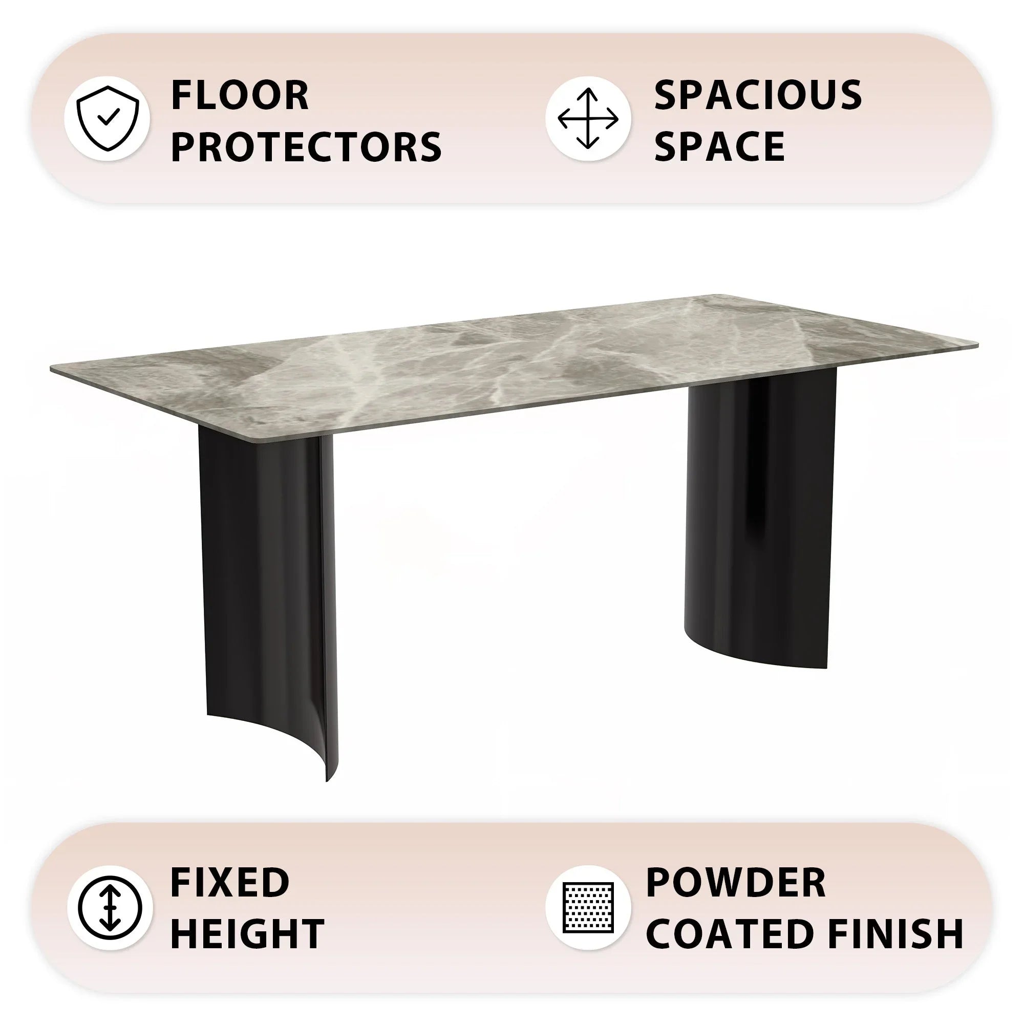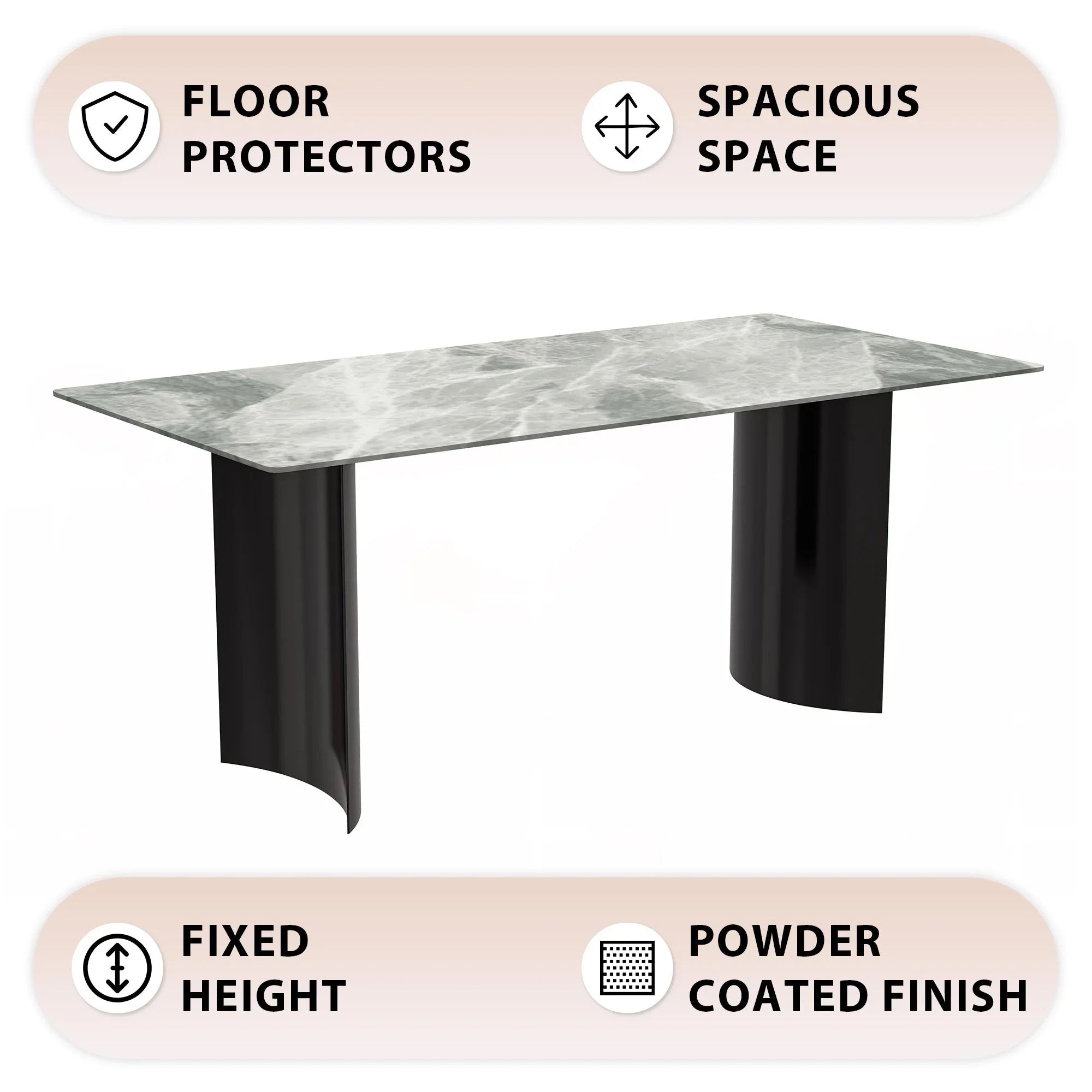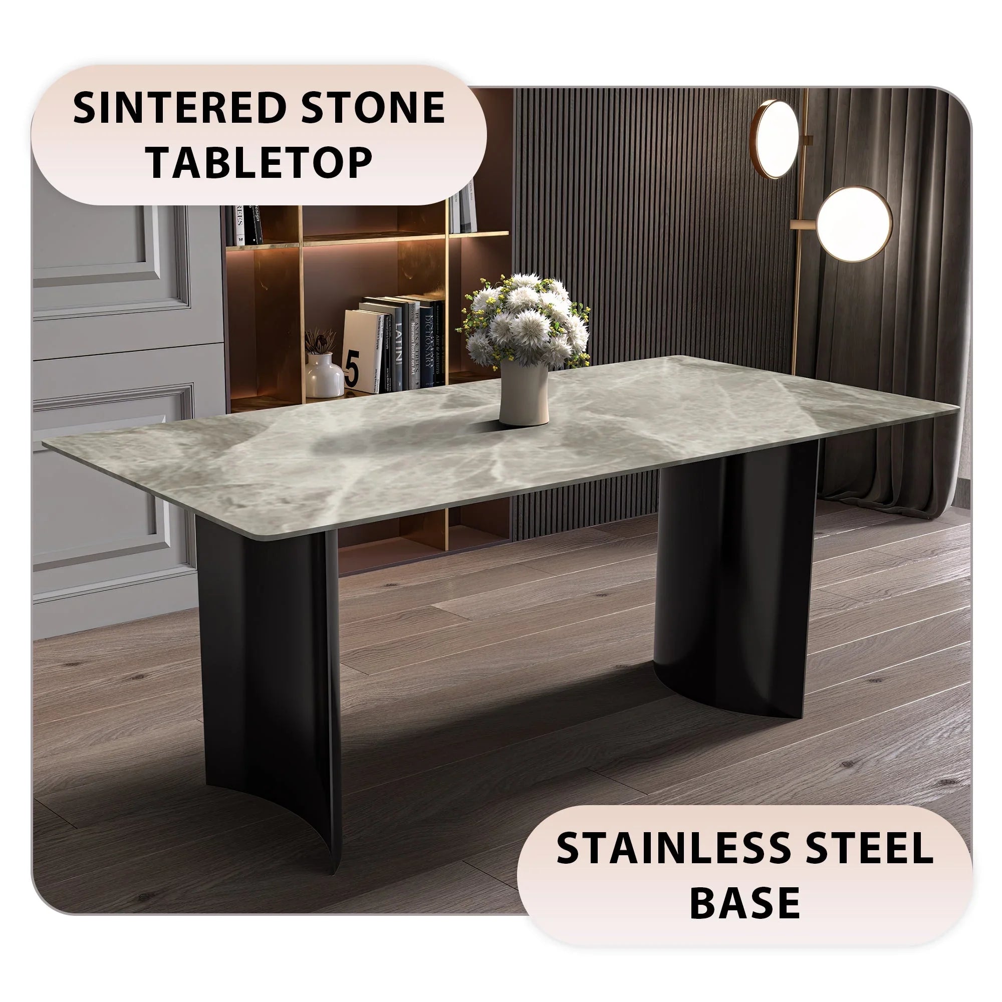 Zara Rectangular Dining Table with Glass/Sintered Stone Top and Stainless Steel Base