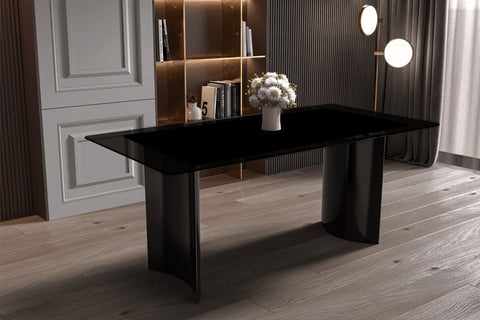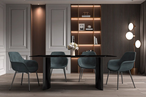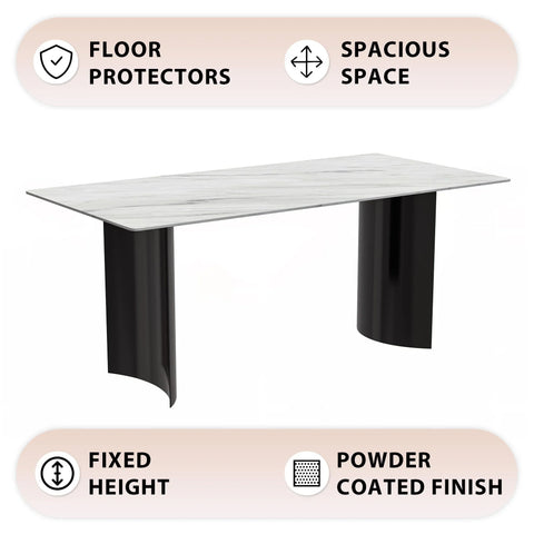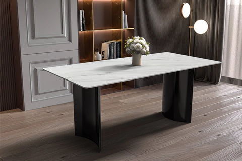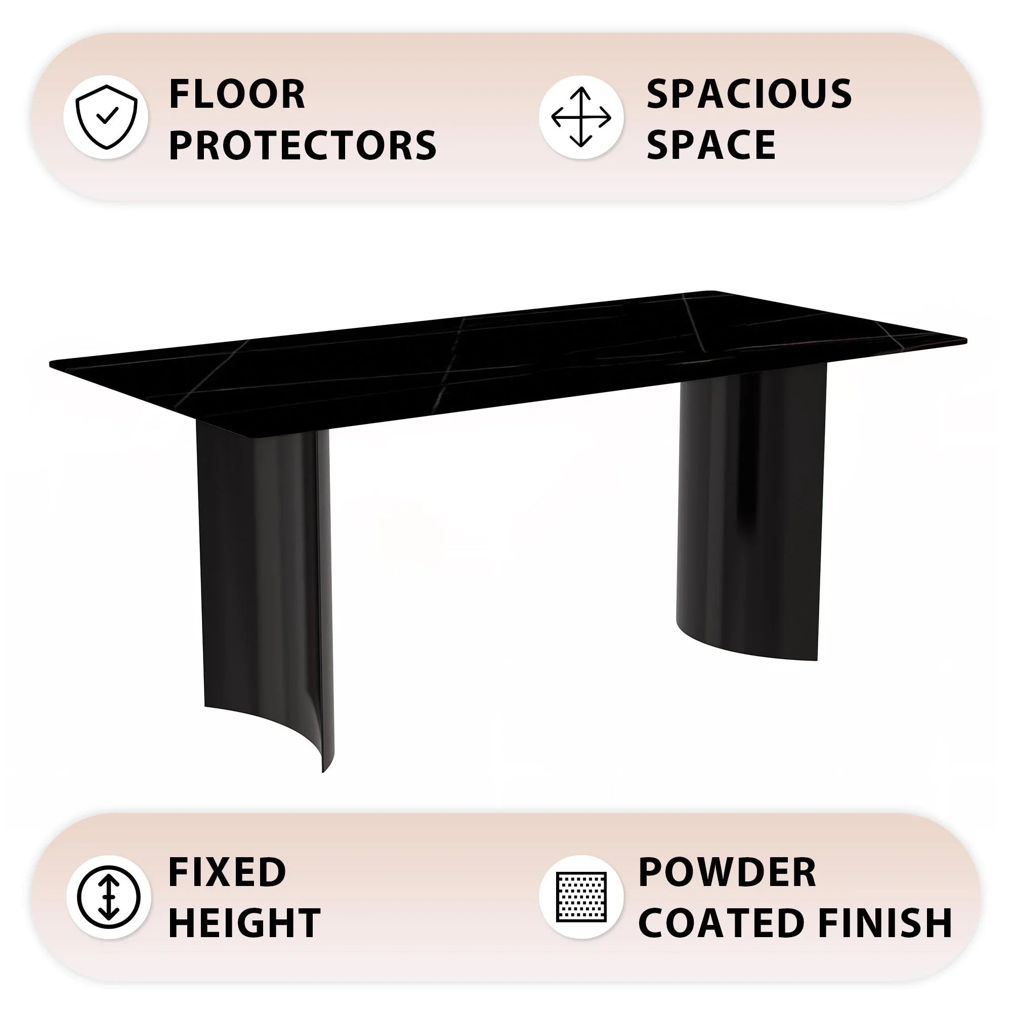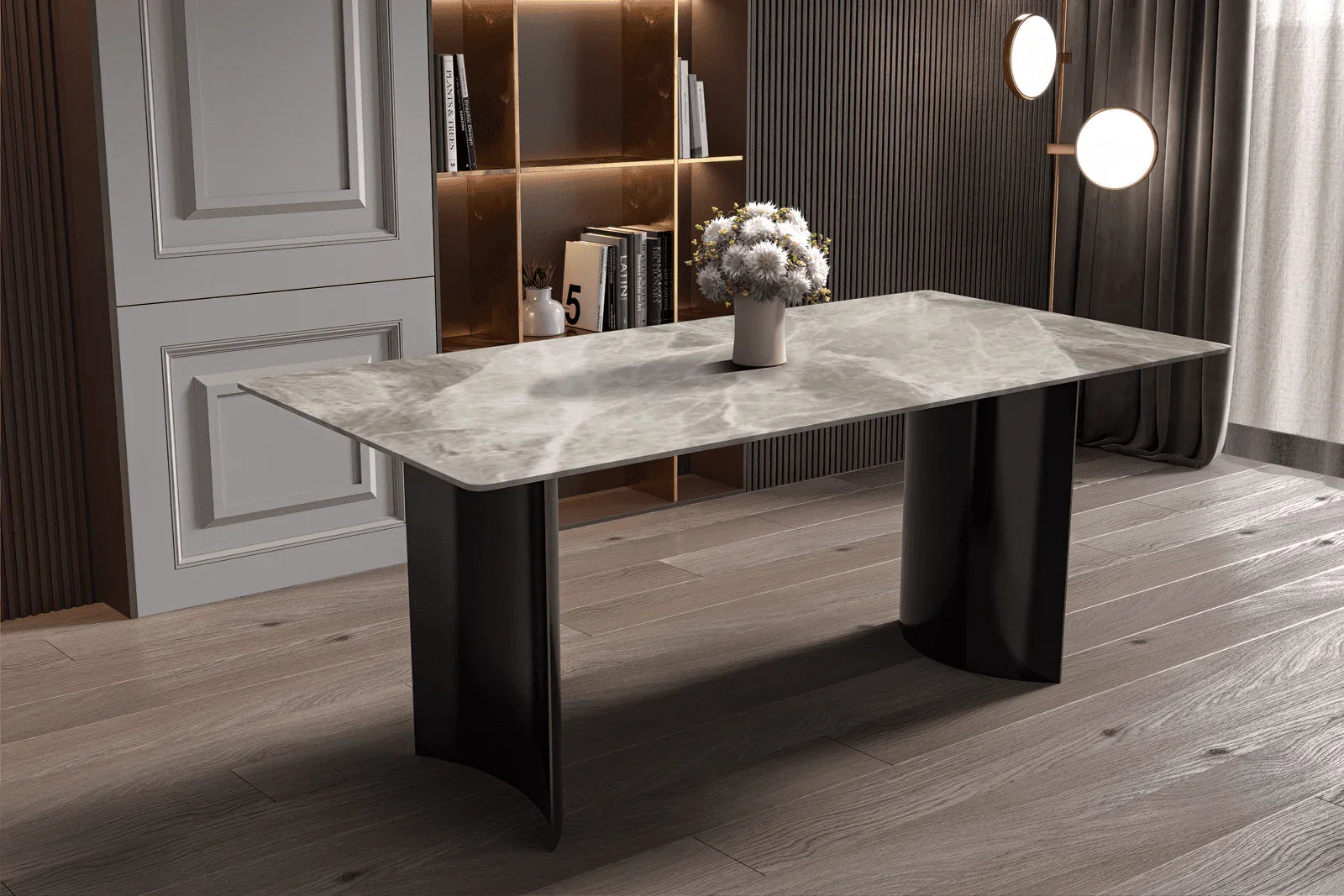 Zara Rectangular Dining Table with Glass/Sintered Stone Top and Stainless Steel Base